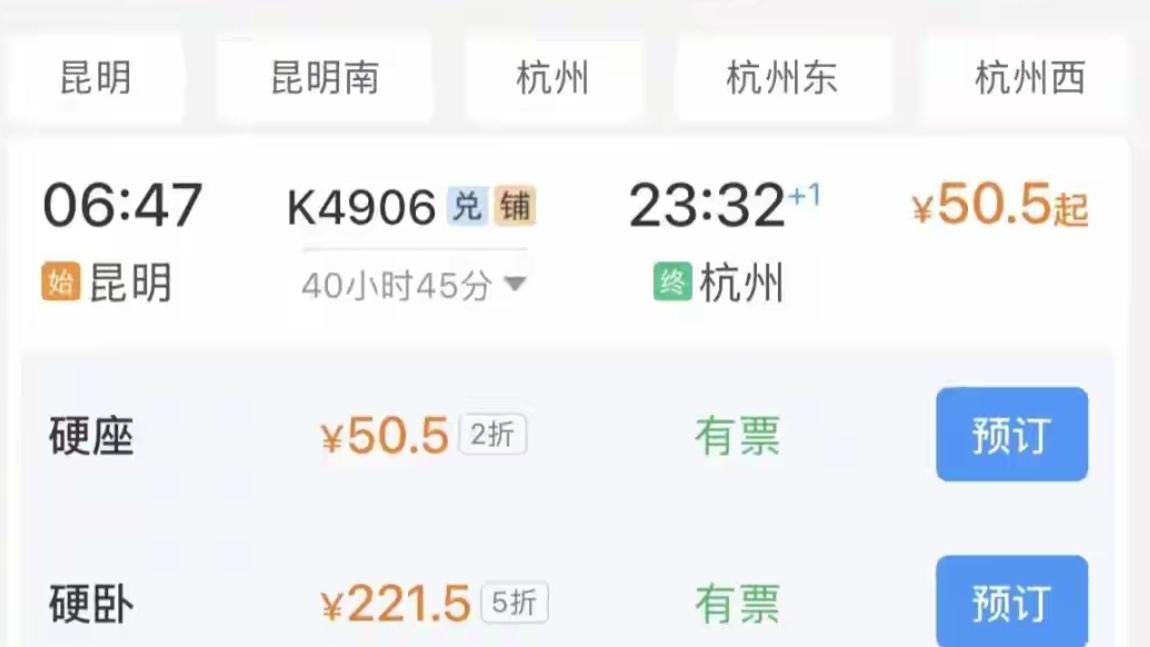 🔥52.5元从昆明到上海!这趟慢火车装满春运年味。昆明出发的K4418次慢火车火了!春运特惠硬座仅52.5元,不足高铁十分之一,44小时跨两千公里抵上海 。车厢里腊肉香混着笑语,老乡们晒着年货唠家常,每一站都藏着烟火气。慢的是车速,暖的是回家路,这才是中国人的春运浪漫~你觉得怎么样呢?评论区聊聊。春运票价 绿皮火车票价 春运票价