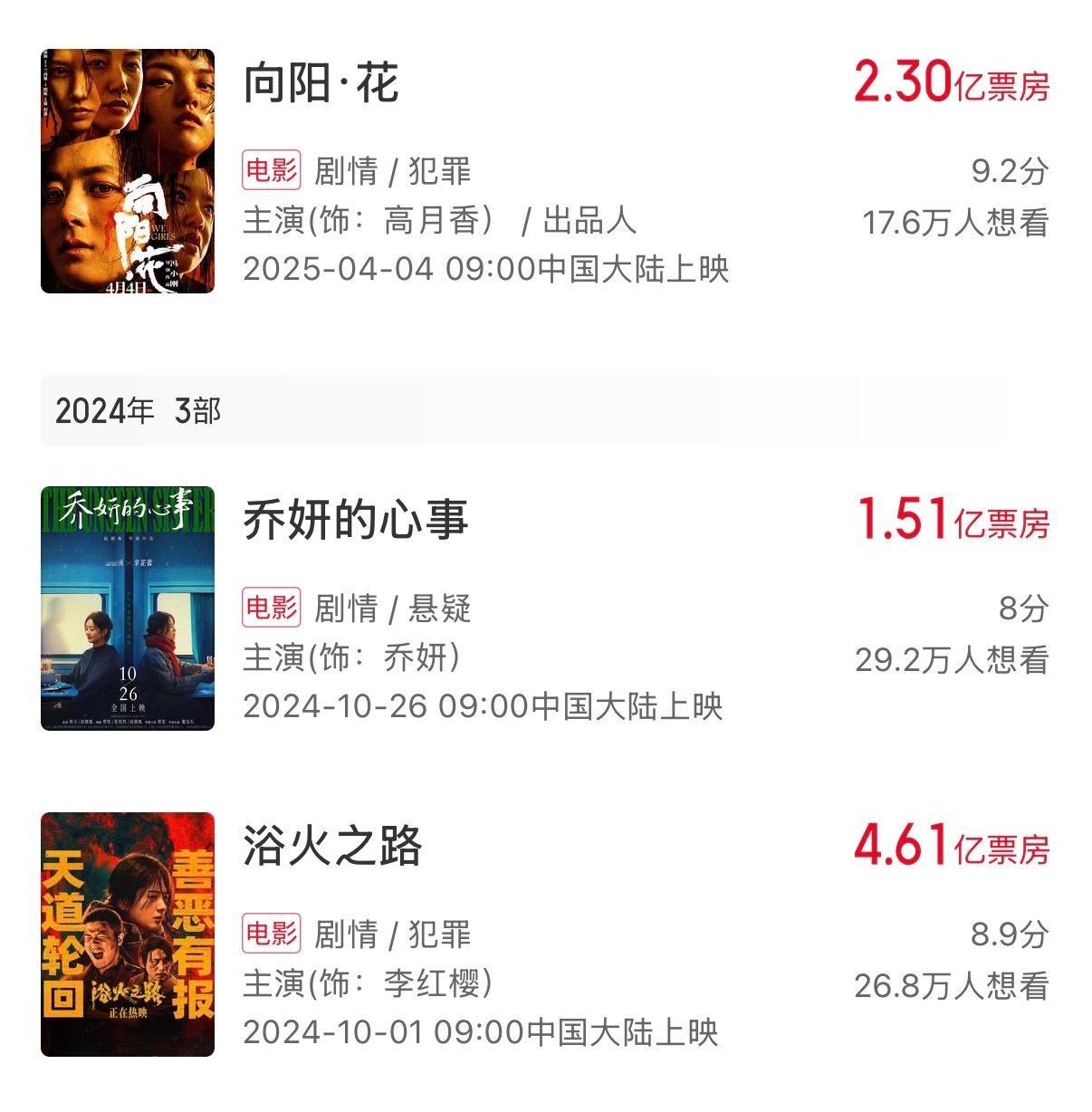 女流量电影票房号召力第一人?看来后面不缺电影拍了。