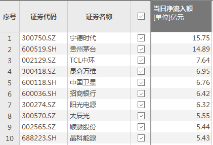 上证报中国证券网讯(记者李雨琪)Choice数据显示,2月4日,资金净流入额排名前十的个股依次是宁德时代、贵州茅台、TCL中环、昆仑万维、中国卫星、招商银行、阳光电源、太辰光、顺灏股份、晶科能源。其中,宁德时代获净流入15.75亿元。