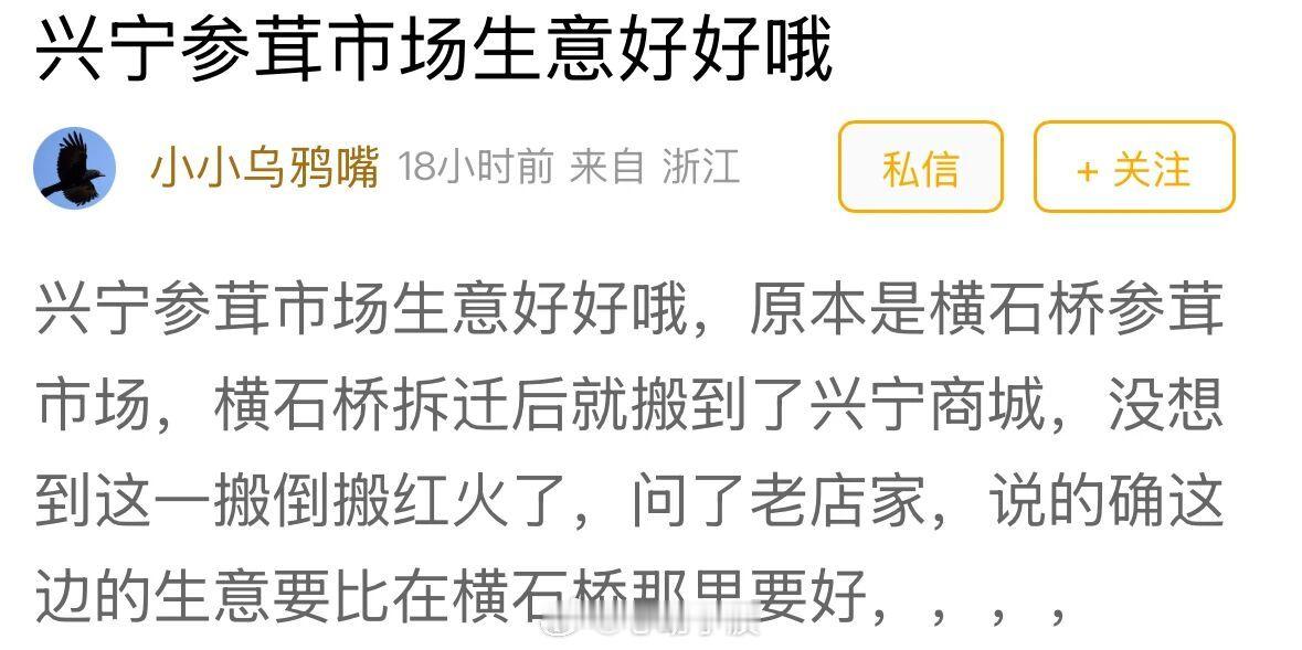 【宁波这个市场搬迁后生意更红火了 !网友称其是“老年经济”,但没想到年轻人也疯狂打卡!】2025年6月,宁波老牌横石桥市场因城市更新搬迁至兴宁商贸城,更名为“新横石桥市场”。市场经营面积近8000平方米,保留“烟火气”与高性价比,涵盖参茸、茶叶、布料等业态。搬迁后生意更红火,25-35岁客群占比从5%升至20%,年轻人因“朋克养生”、淘布料定制汉服等打卡,社交平台相关攻略获热捧,传统批发市场实现“逆龄生长”。(东方热线)2026家乡年我在宁波过春节
