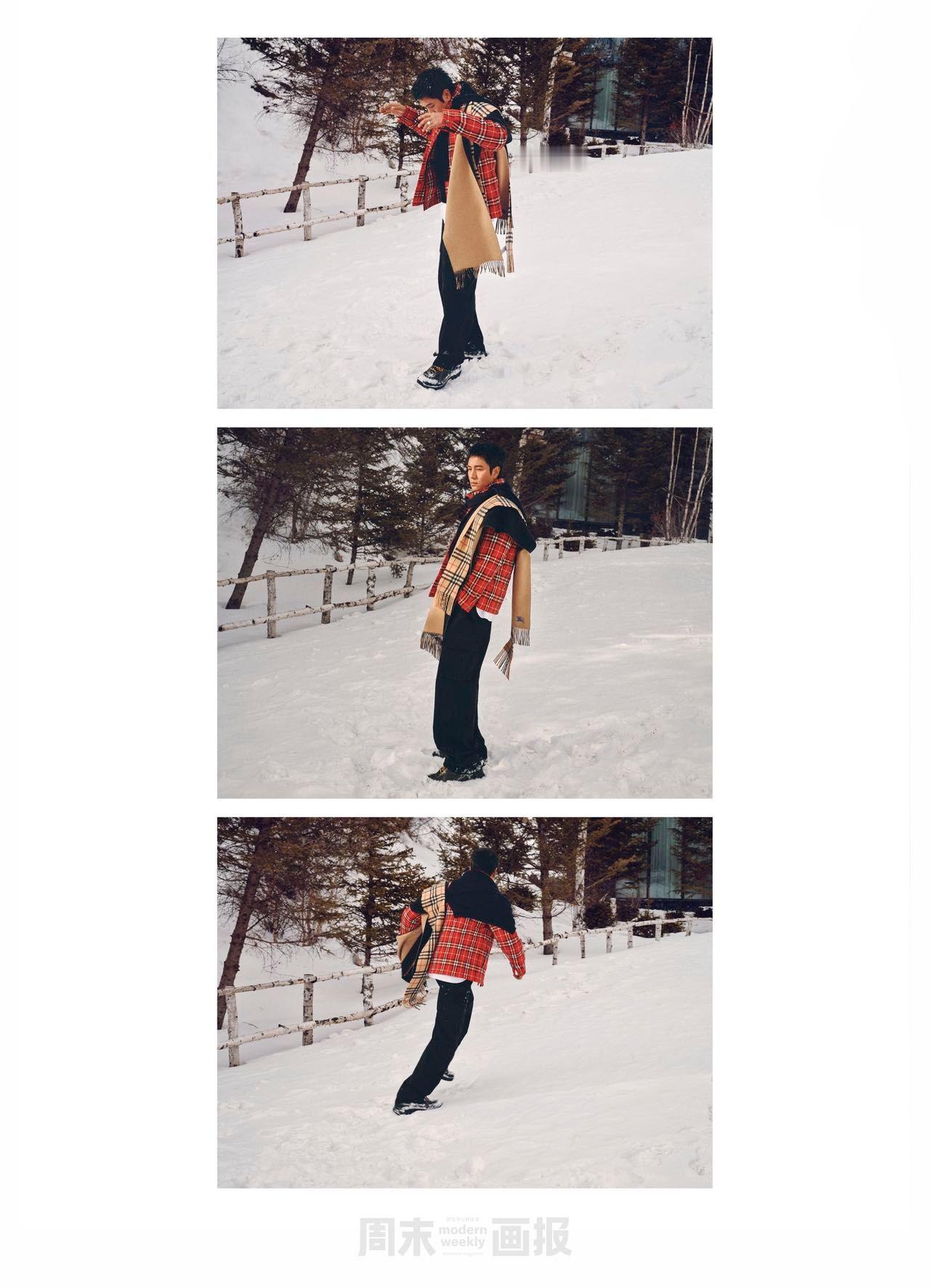 陈坤生日刊封面 雪地光影间,陈坤以经典格纹碰撞冬日质感,眼神深邃,生日刊尽显与生