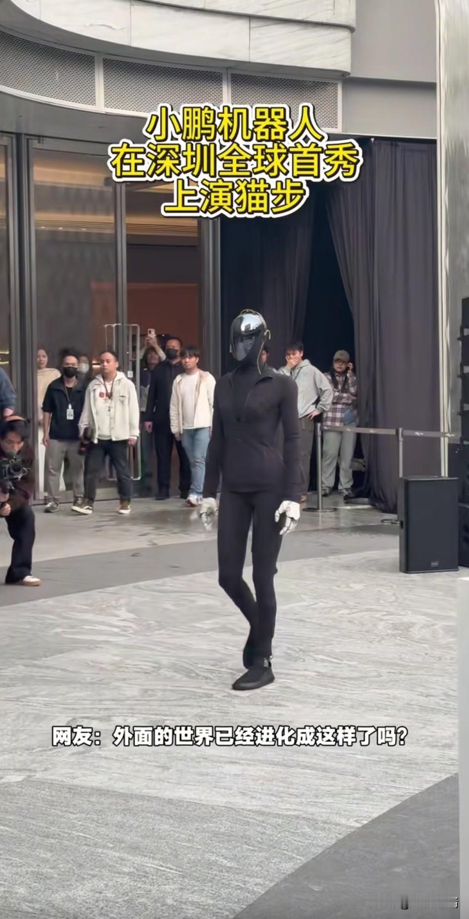 天呐,外面的世界已经进化成这样了吗?小鹏机器人在此现身深圳大街, 他居然还会走猫步, 而且直行转弯都可以, 现场的观众都在惊讶, 都不知道人工智能已经进化到了这种程度,仿佛世界打开了一扇神奇的大门, 让人们看到了第四次科技革命的门槛, 未来的世界一定是人工智能的世界, 只见这个机器人和人类有些相似, 居然可以稳稳的走起猫步, 看得出来周围的工作人员非常紧张, 他们都害怕这个机器人摔倒, 但是机器人却稳稳的向前走着, 很快走到了舞台中央, 主持人和工作人员都开始了讲解, 这样的机会并不多见, 机器人终于从实验室走向了人类社会, 相信未来小鹏机器人会更加的厉害, 探寻人工智能的脚步不会停止, 这就是人类向前发展的动力!