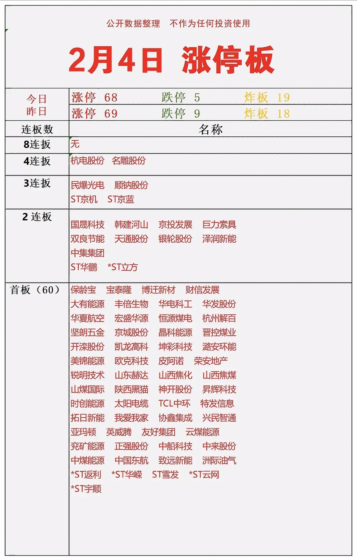 2月4日涨停板梳理追踪,股票投资指南! 2月涨停股追踪:杭电、名雕领衔三板,能