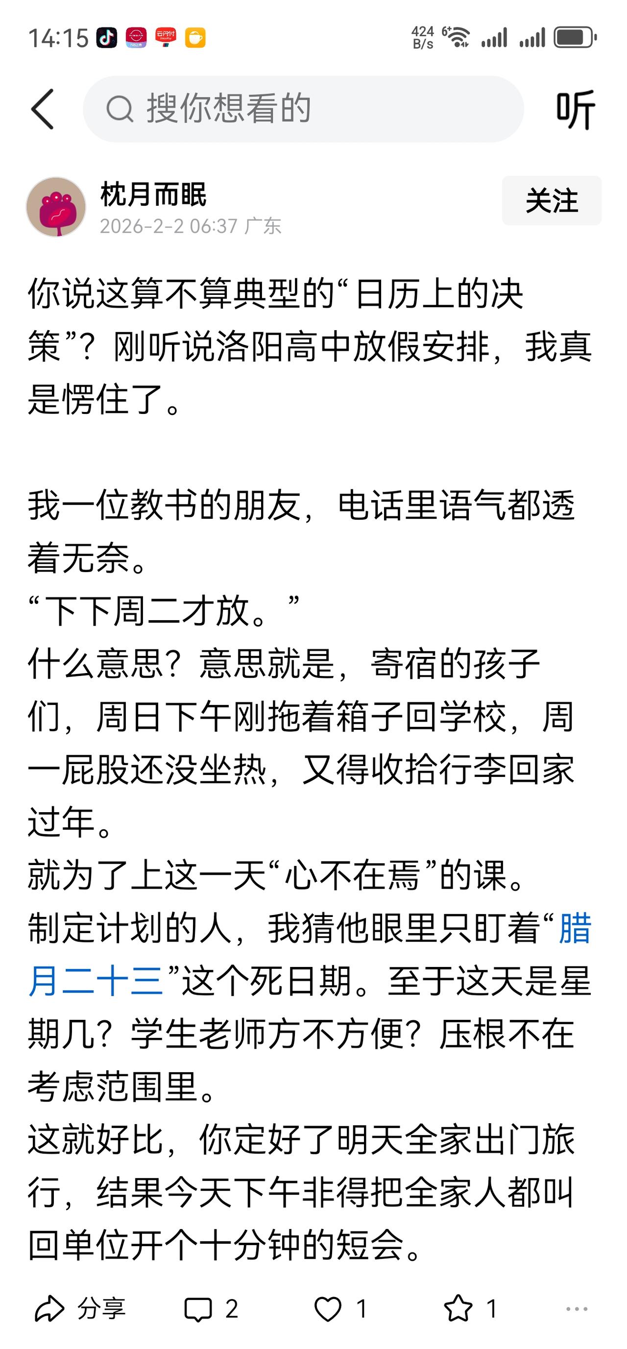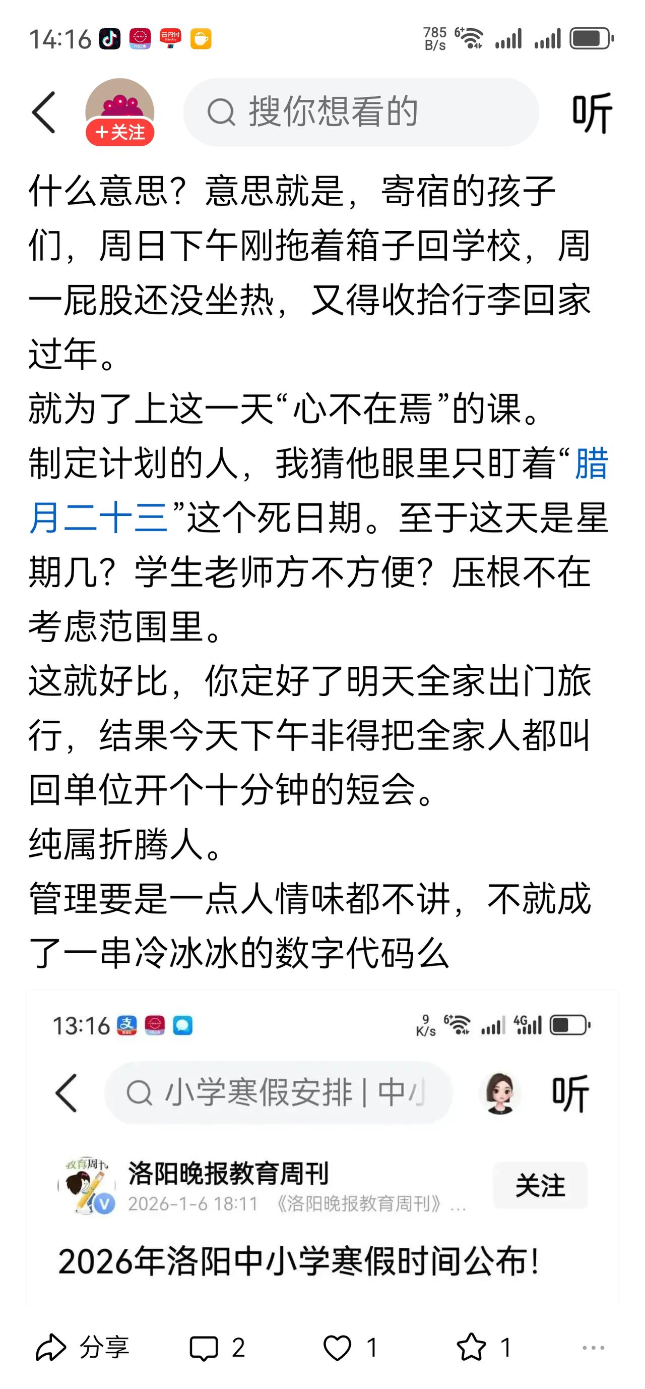 我的微头条这么受欢迎吗?这两位朋友算不算抄袭我的?你们的头条被抄袭过吗? 这两位地址显示为山东和广东的头条朋友,同一内容的文章,立意和我一模一样,文字稍作改动就发出来了。 真的是心有灵犀一点通吗?两位朋友所用的图片,也是我的截图,截图时间都是 13:16,分毫不差。 写头条,不知道大家的本意是什么,我是有感而发,有时候也会用到网友的图片,但是,所写的内容绝对是自己的意见,自己的见解,自己的心声! 大面积抄袭,我做不到。 不说什么大话,什么文章合为时而著,歌诗合为事而作,最起码,我手写我口,我口说我心,这应该是写作的态度吧! 我想,自己想什么写什么,也是我几年来头条收益还不到 1000 元的原因吧!