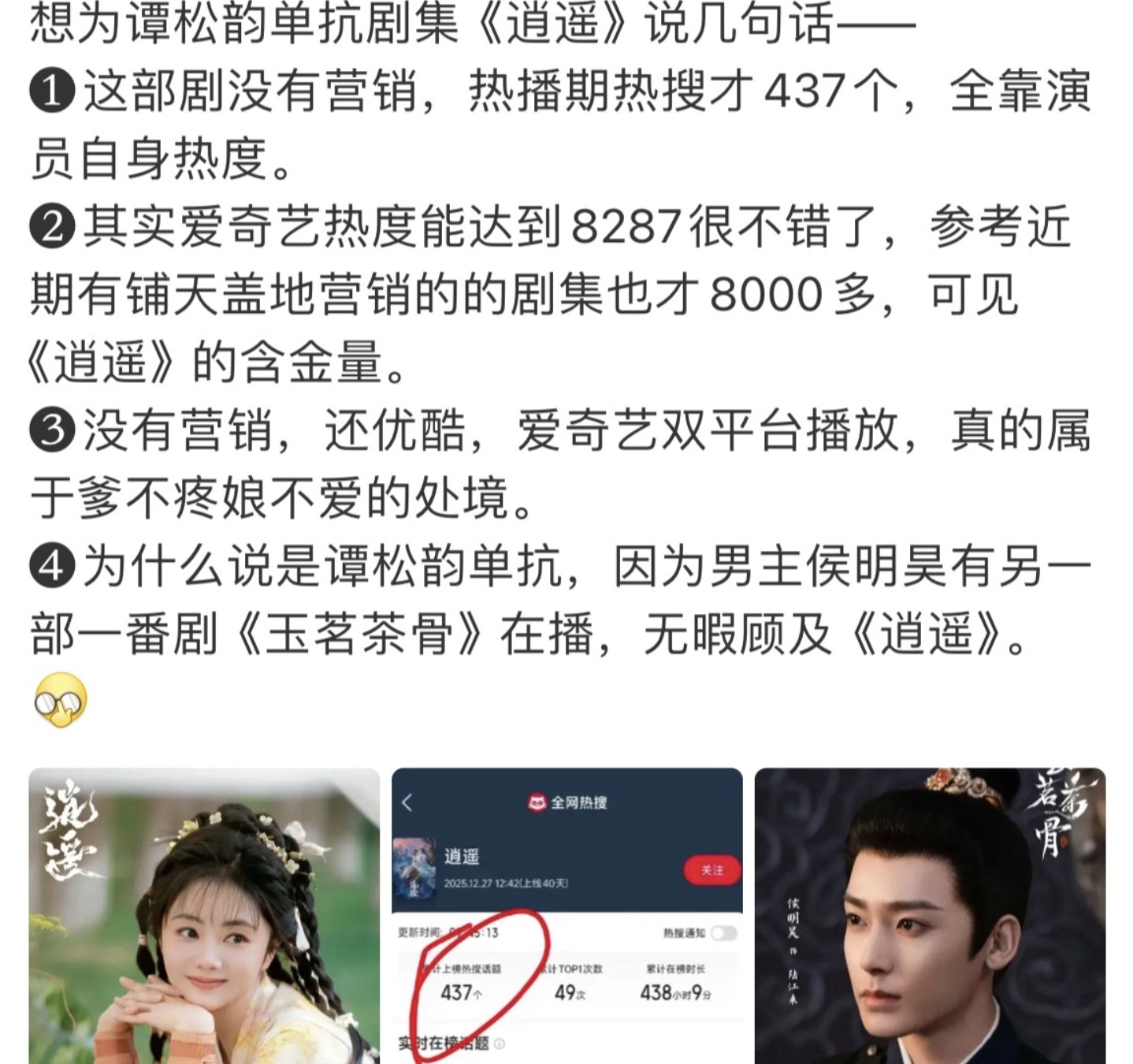 逍遥谁扛是公说公有理婆说婆有理,但侯明昊真的播什么剧都是透明体,是为什么呢,想了几个月没想通。