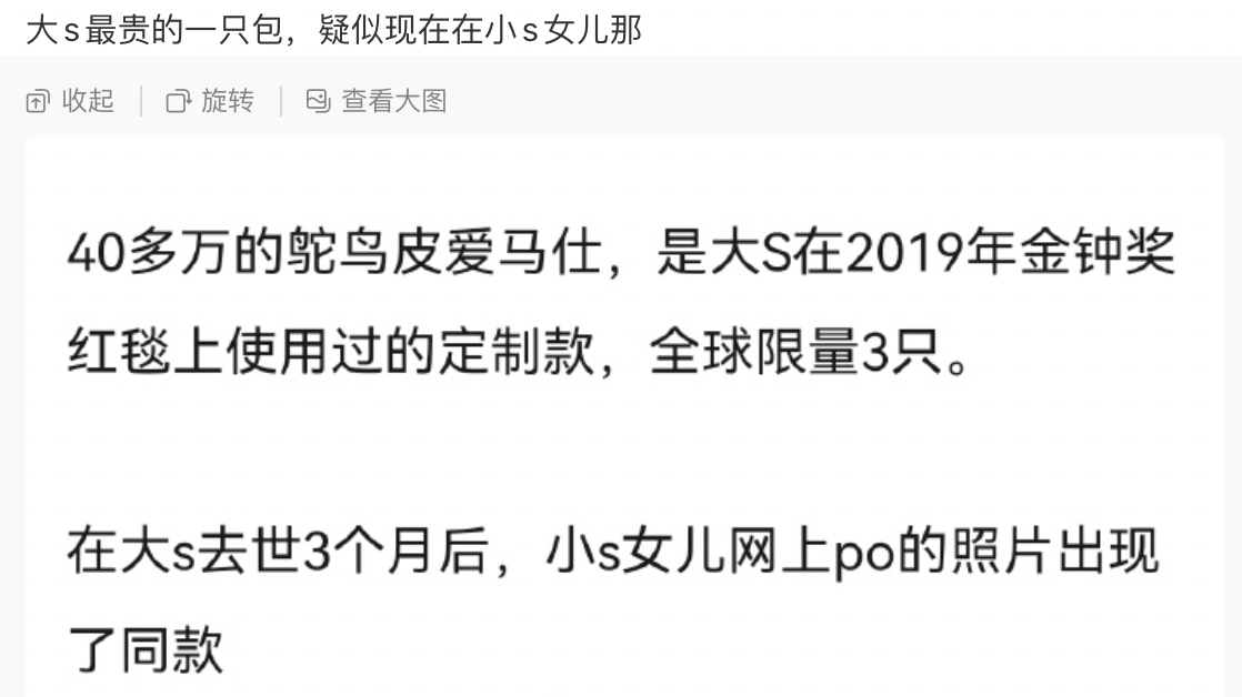 大s的最贵的包疑似在小s女儿手里,竟然还有这种事情?