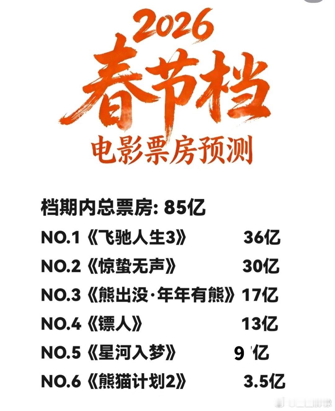 好多人开始预测春节档票房和排片了。这里我看着感觉飞驰人生3估高了。惊蛰无声高了,熊出没低了。星河入梦高了。熊猫计划低了。镖人差不多。