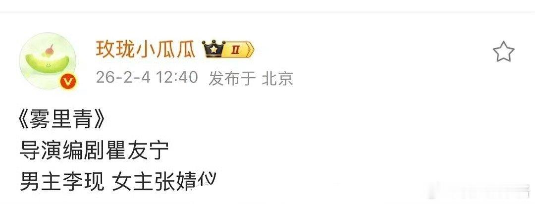 🍉《雾里青》男主李现,原定女主从章若楠换成了张婧仪,期待值如何