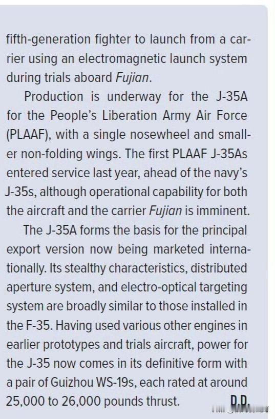 涡扇19官宣推力11.8吨! 新加坡航展上,中航工业把歼35A的大比例模型摆到C位,顺带披露的涡扇19发动机数据才是亮点。 单台推力25000-26000磅,换算下来就是11.3-11.8吨,这个水平已经摸到全球中等推力发动机顶尖梯队,比欧洲EJ200的9.1吨高出不少,接近美国F414EDE的12吨。 要知道歼35A是双发配置,总推力优势明显,再加上机身顺滑的隐身设计和先进航电,能实现先敌发现、先敌杀伤的作战效果,协同歼20作战完全没问题。 现在空军版已经列装服役,还能适配福建舰的电磁弹射,出口版也在推向国际市场,作为自主研发、供应链可控的五代机,竞争力摆在这。
