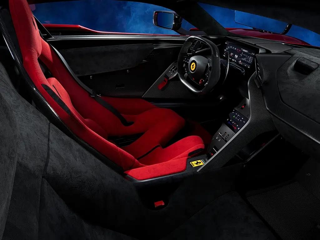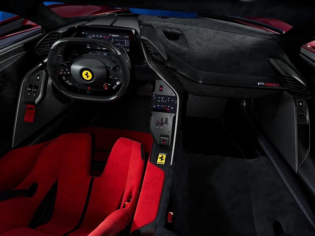 法拉利F80 2月5日预计在国内亮相 零百加速2.15秒 法拉利F80这车在海外已经发布,这次是国内展出。 动力上,3.0T V6双涡轮发动机+三电机,综合功率1217马力,零百加速2.15秒或2.2秒,极速350km/h到390km/h。用的2.28度 F1级锂电池,重39.3公斤,放电功率242kW,用的8速双离合变速箱,换挡8毫秒,支持弹射起步和扭矩矢量控制。 车身用的全碳纤维,低趴宽体+贯穿前唇、大型扩散器,车尾主动双层尾翼能自动升降,蝶翼车门、隐藏式门把手、半透明碳纤维车顶。 内饰,红配黑,用了不少Alcantara与碳纤维材质,方向盘集成拨片和模式旋钮,一体式碳纤维赛车座椅。 这车美版售价400万美元,折合人民币约2774-2849万,国内落地价因税费要更高,全球仅限量799台。 最后,法拉利F80主要亮点:混动系统马力破千匹,零百2.15秒,加速响应快。F1级空气动力学、主动尾翼和可调悬挂,下压力足,过弯稳。全碳纤维车身 使车身更轻。 短板:2.28度的电池 没有纯电续航,为合规而设,V6声浪缺少大排量自吸的质感。维修保养成本高,碳纤维部件维修贵。售价近三千万,且全球限量799台。