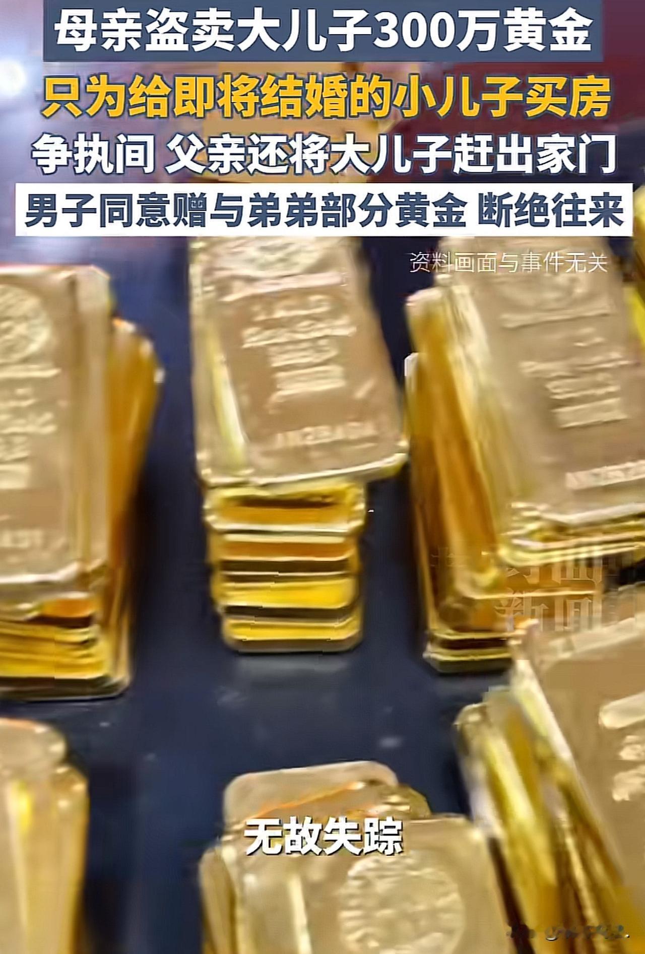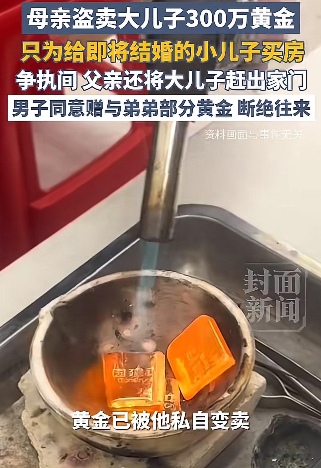 “这心偏到太平洋了!”香港,男子发现家中保险箱里300多万黄金不翼而飞,就连买金子时的票据都不见了。因保险箱密码只有父母知道,他赶紧询问父母。一问得知,是自己母亲将金子拿走,卖了300多万港币,准备给即将结婚的小儿子支付婚房首付。男子气愤不已,和父母发生争执,却被父亲逐出家门。男子又去找弟弟理论,希望弟弟归还,弟弟虽然承诺还款,但要求协商。最后,男子没报警,愿意赠与弟弟三分一的黄金,但断绝与家人来往。网友:皇帝爱长子,百姓疼幺儿! 这名男子挺会理财的,他总觉得钱攥在手里不牢靠,东花一点西花一点,到最后根本攒不下多少。 为了逼着自己存钱,他干脆选了买黄金的法子,这样既相当于变相存了钱,要是金价涨了,还能额外赚一笔,一举两得。 于是他每个月都会固定买些金币,后来收入慢慢提高了,就换成半两重的金粒来存,这一存就坚持了15年。 为了安全起见,他把这些黄金都锁在家里的保险箱里,保险箱的密码除了自己知道,也没瞒着父母,都告诉了他们。 有时候工作实在忙得抽不开身,他还会让母亲帮忙去金店买金子,所以这么多年来,他从来没担心过这些黄金的安全问题。 前段时间金价不是涨得挺高嘛,他想着趁这个机会卖点黄金周转一下,结果回家一打开保险箱,当场就傻眼了。 里面的黄金全没了,就连当初买黄金的单据也被人拿走了。 男子脑袋“嗡”的一下,盯着空空如也的保险箱,整个人简直像被雷击了一样,懵了好半天。 震惊过后,他第一时间就去问了父母,毕竟知道保险箱密码的就只有他们一家三口,再没别人了。 一问才知道,原来是母亲趁金价高位的时候,偷偷把所有金子都卖了,一共卖了差不多300万港币。 男子又气又不解,忍不住责问母亲:“就算要卖,也该提前跟我说一声啊,这些金子说到底是我自己的!” 这时母亲才支支吾吾地说出了实情:“这不你弟弟要结婚嘛,女方那边明确要求得有婚房,不然就不同意结婚。我和你爸实在拿不出这么多钱,就没跟你商量,把金子卖了,准备给你弟弟付婚房的首付。” 男子听了母亲的话,心里像堵了一块石头,如鲠在喉。他怎么也没想到,父母会说得这么轻巧,这可是他辛辛苦苦工作、省吃俭用攒了15年的血汗钱啊!父母怎么能这么偏心呢? 他自己也计划着买房,凭什么要拿他的金子去给弟弟买婚房? 男子实在不服气,就和父母据理力争,没想到父亲当场就怒了,骂他没亲情、不懂事理,还直接把他逐出了家门,让他以后别再回来了。 没办法,男子只能收拾好自己的东西,暂时去酒店住。父母的偏心和绝情,让他心里别提多难受了,又委屈又寒心。 后来他找到弟弟理论,弟弟嘴上倒是答应会还钱,但一直推脱说“要商量商量”,还说自己结婚急需这笔钱,让他先冷静一点。 最后,男子顾及到父母的身体,也念着一丝血脉亲情,终究没忍心报警。 他同意把三分之一的黄金折成钱,送给弟弟当新婚礼物,剩下的三分之二则要求弟弟在两个月内还清。 但他也明确说了,以后不会再和家人同住,弟弟的婚礼他也不会去,算是和这个家彻底断了来往。 此事曝光后,网友炸了:这儿子做得挺好的,最后的一次赠予,给的并非部分黄金,还有给断了这辈子的亲情,对得起任何人! 母亲在做出偷黄金的那一刻,心里就没有大儿子。是我没那么大度,黄金不但要回,还会报警,生死不往来。 《盗窃罪条例》(香港法例第210章)第2(1)条:任何人不诚实地挪占属于另一人的财产,意图永久地剥夺该另一人的财产,即属犯盗窃罪;循公诉程序定罪后,可处监禁10年。 黄金是男子合法个人财产,母亲未经男子同意、用已知密码开锁变卖,无合法授权,母亲隐瞒变卖事实、用于小儿子购房,主观上不诚实且有永久剥夺所有权的意图,构成盗窃罪。 金额约300万港元,远超普通盗窃,属情节严重,若男子报警,其母亲可判10年监禁。 这哪是偏心,分明是强盗行径!母亲偷卖儿子15年血汗钱,父亲还将儿子赶出门,弟弟占了便宜还拖延还款,一家子把亲情当掠夺借口。 男子没报警还赠出三分之一,已是仁至义尽。这样的家人,早断早解脱,没必要留一丝情面。