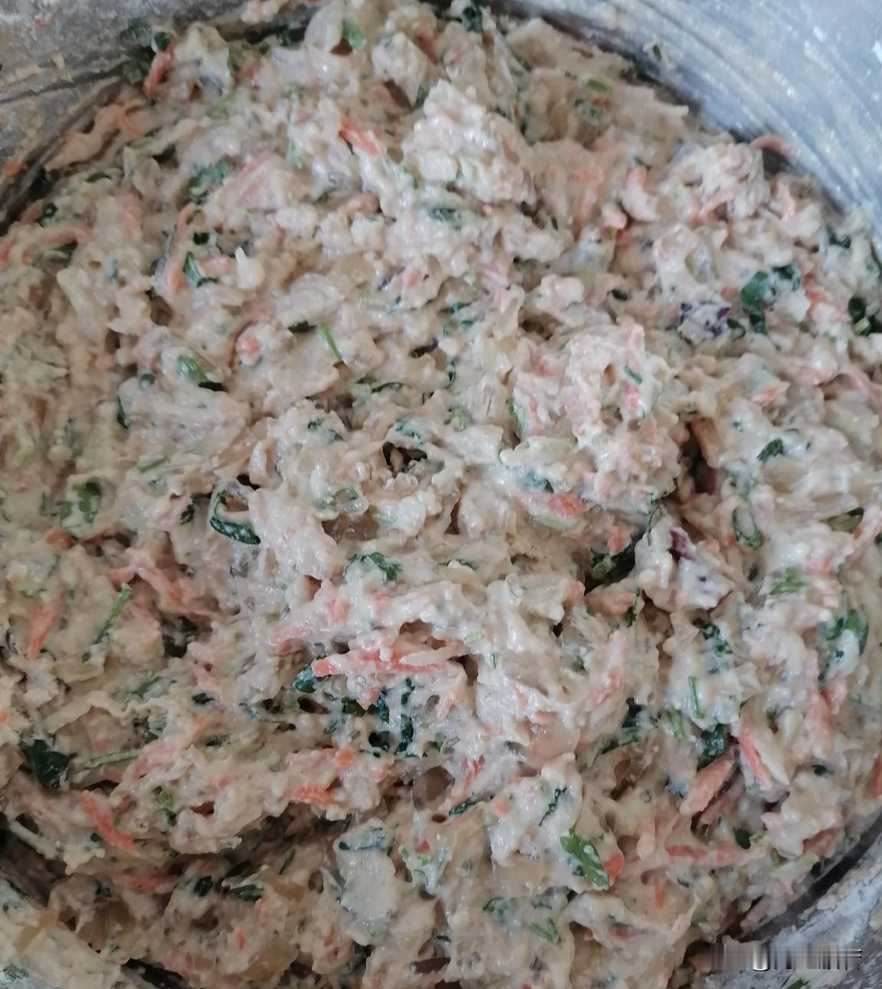 律回岁晚冰霜少,春到人间草木知。今日立春,万物复苏。一大早起来,继续准备年货。 今天炸丸子,准备工作得做好。胡萝卜,粉条,香菜,葱姜蒜,五香粉,豆腐,面粉,还有煮肉的汤。 胡萝卜丝剁碎,煮粉条剁碎,豆腐搅碎,香菜切碎,一起搅拌,再加上葱姜蒜,五香粉,酱油,盐,倒一些猪肉汤和面粉,搅拌成面糊状。起锅烧油,油温不能太高,容易外边糊了,里面是生的,需要一点一点加温。用手捏成丸子形状,一勺一勺下锅,定型之后,用筷子一个一个分离,以免粘连,等颜色变金黄,差不多就出锅了。 用漏勺盛出来,放大碗里,热着吃凉着吃都行,这是过年餐桌上必不可少的美食。老爸说特别好吃,看来临走前还要做出一盆,弟弟一家子回来,也能吃上了。 明天尝试做一下蒸丸子,买的白丸子太贵了,挑战一下家乡特色小吃,我就不信我不会,俗话说做不好还做不坏嘛,看看我做饭的潜力究竟有多大!