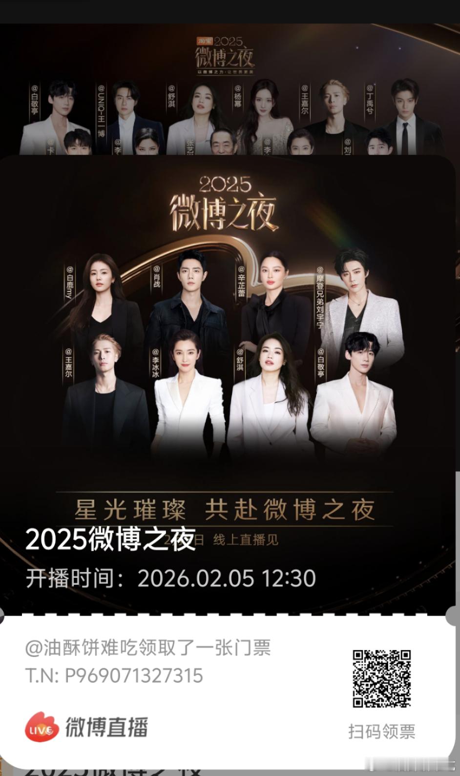 微博之夜预约成功后弹出的两版海报