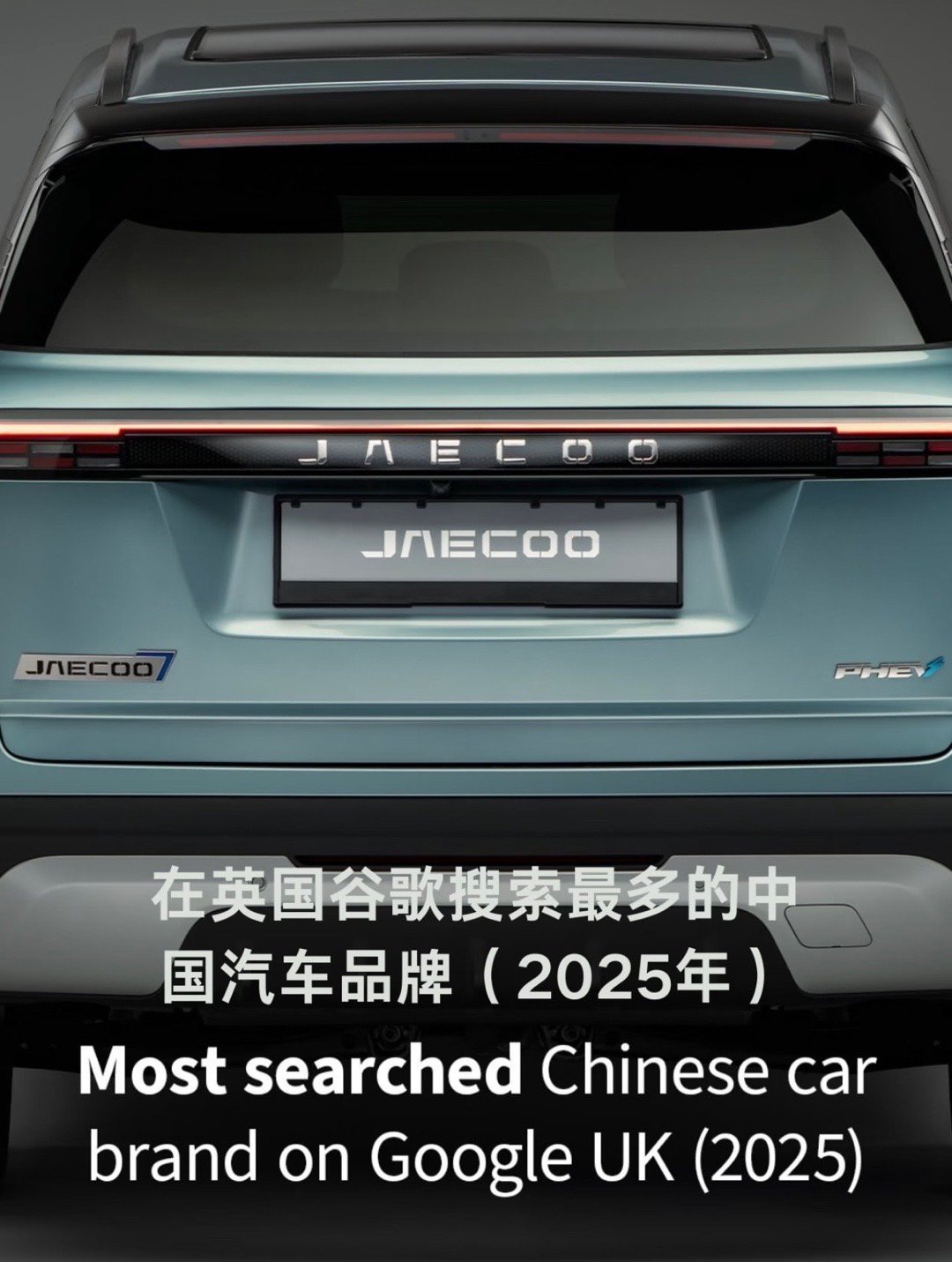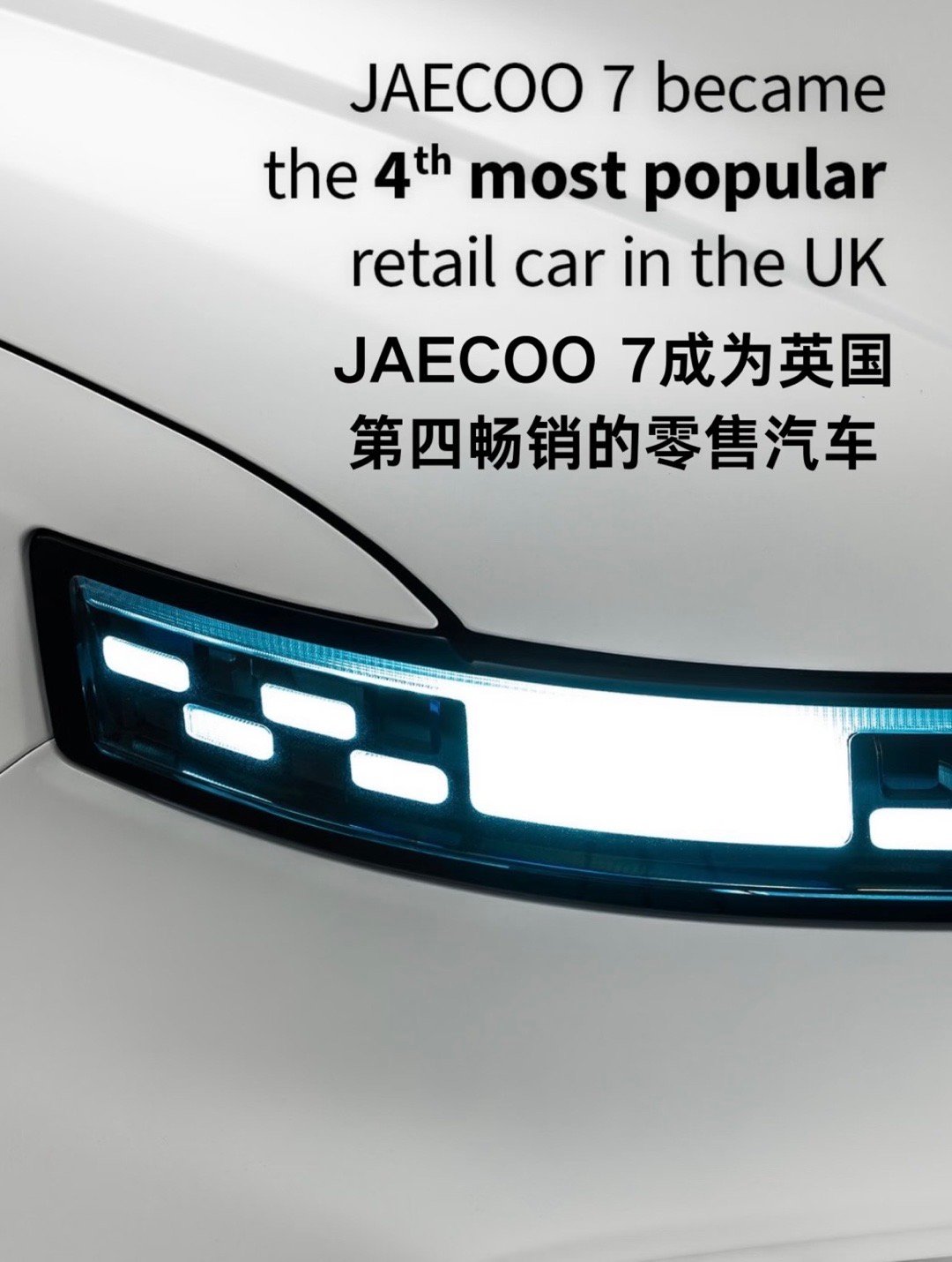 2026年1月, Jaecoo 7 荣登英国销量榜第二,为中国品牌销冠。