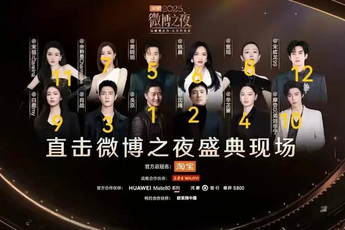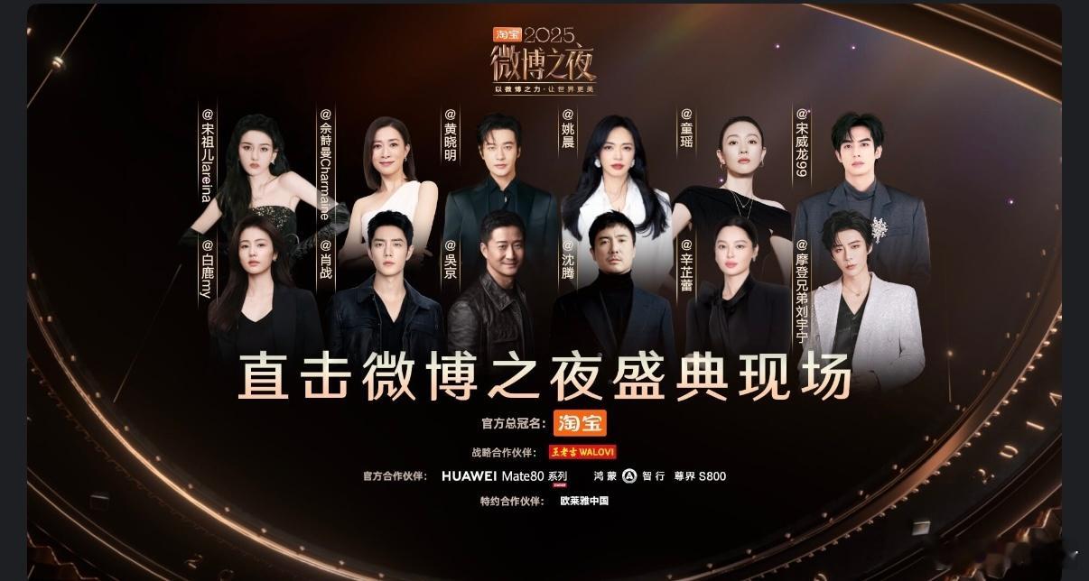 微博之夜 微博之夜又出了一版预告海报⭐第一版: 张艺谋 李宇春 李冰冰 舒淇 杨幂 王一博 王嘉尔 周深 刘昊然 白敬亭 丁禹兮⭐第二版:吴京 沈腾 肖战 辛芷蕾 黄晓明 姚晨 佘诗曼 童瑶 白鹿 刘宇宁 宋祖儿 宋威龙