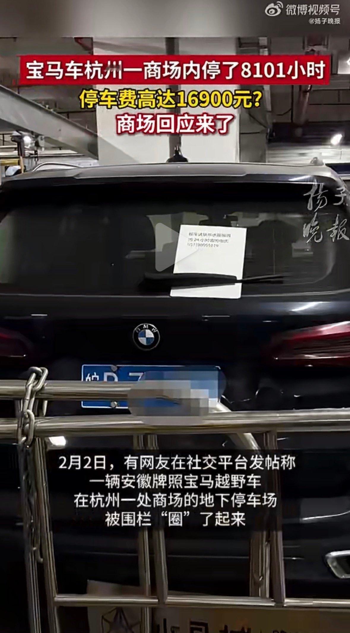 宝马停商场8101小时计费16900元商场停了8100小时,停车费 16900还被围栏圈住,车主是真忘了还是有别的情况?车主还会来取车吗?