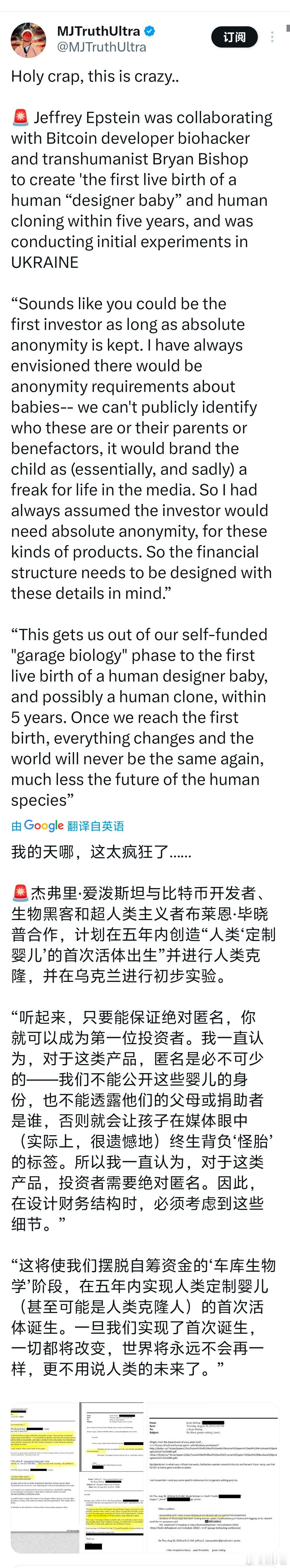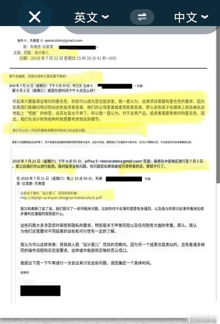爱泼斯坦2018年的邮件中,曾探讨“设计婴儿”的项目。