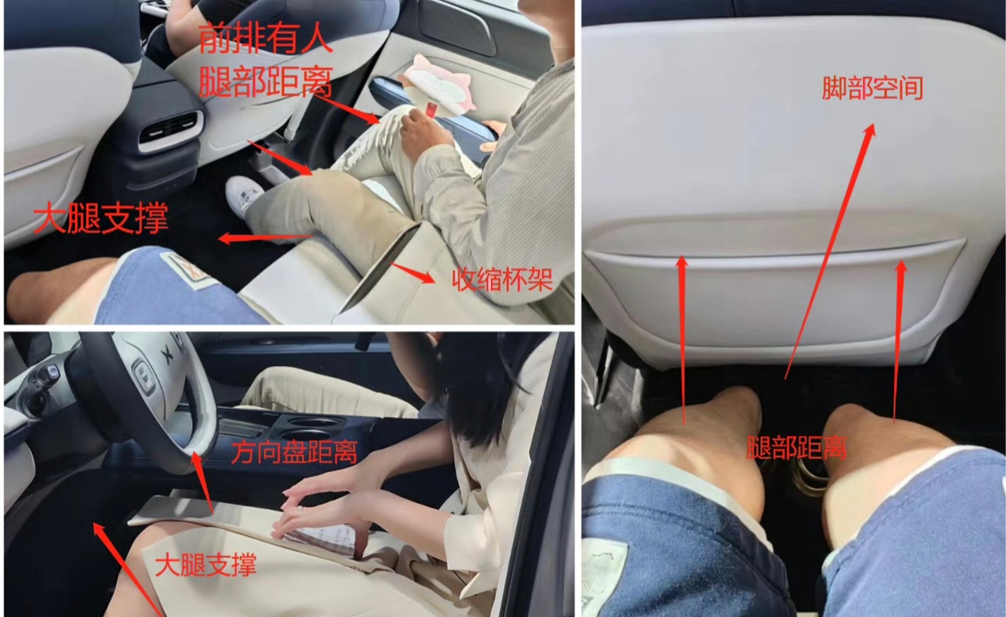 我们这次先不聊辅助驾驶,就说说空间,毕竟作为家用车,空间是完全无法错开的话题。在G6上,空间体验可以说是非常优异了,小鹏说得房率高达85.6%,这个可能太宽泛了,我来具体给大家说说,在G6前排调到B柱过一点点的位置时候,后排还能提供2拳半的距离,而且前排座椅下提供了脚部空间,对于空间非常友好。头部空间这块,得益于后部上檐的设计,后部脑袋的空间在一拳半以上,如果稍微有点躺的坐姿,这个距离大概可以扩大到两拳,而前排基本上应该是有三拳以上的空间,基本上可以说高度空间无忧。重要的一点是这个高度无忧并不建立在“小板凳”的基础上,后排座椅有着良好的高度,甚至超过modelY座椅3厘米。