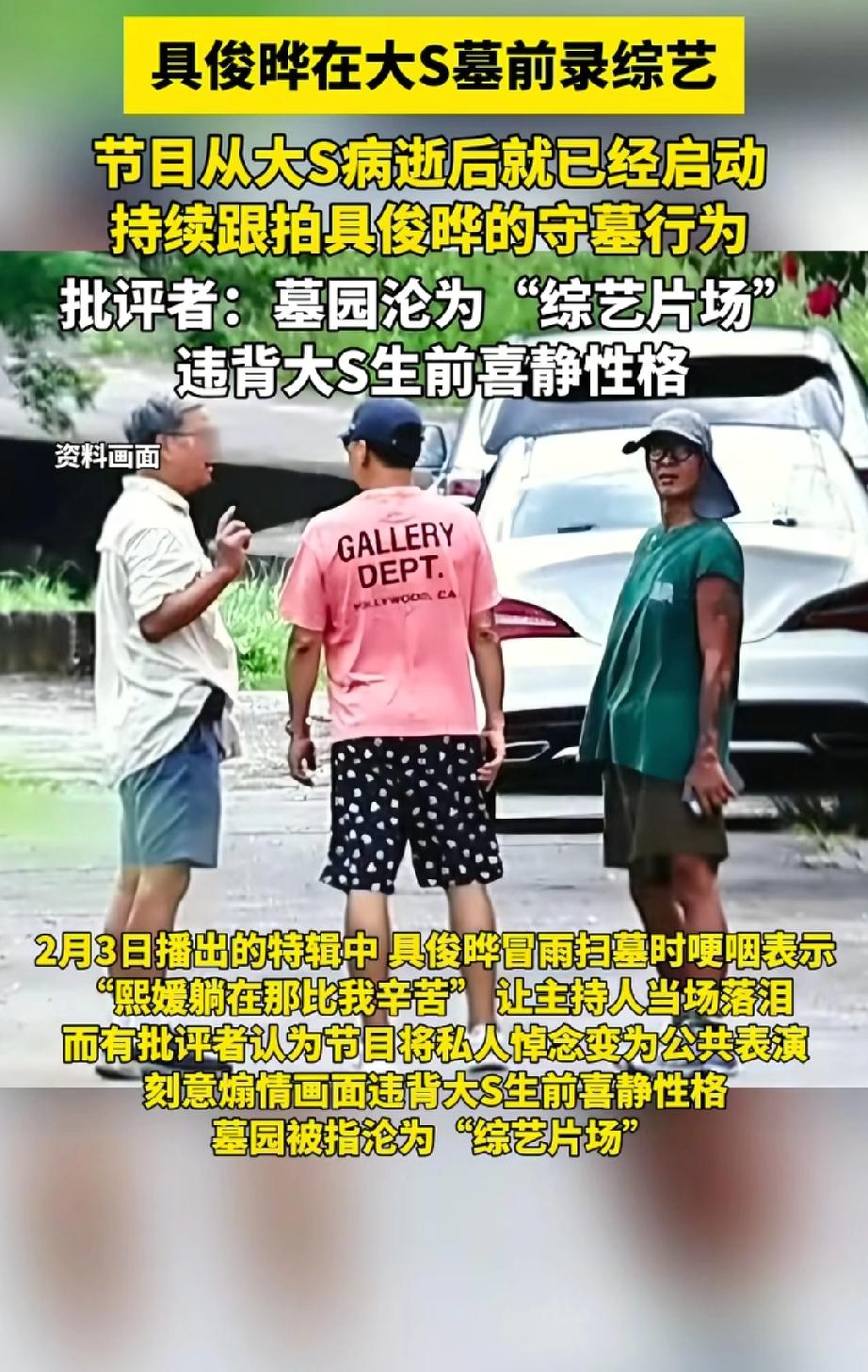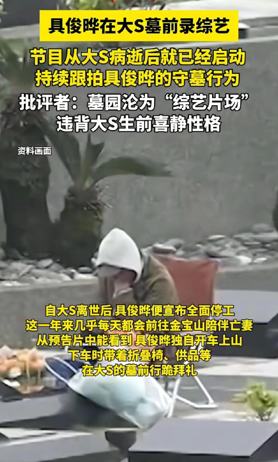 离谱!具俊晔被爆在大S去世后,每天去墓园扫墓,根本不是为了悼念,而是在给韩国KBS电视台拍综艺《名人生老病死的秘密》。 他在墓前摆拍、雨中说话都是节目内容,甚至连大S的纪念雕像揭幕仪式都被节目组跟拍。 更离谱的是,他在节目里还把大S的离世时间说错,彻底坐实了深情全是演的,网友直接骂他把墓地变成了流量赛道! 大s具俊晔