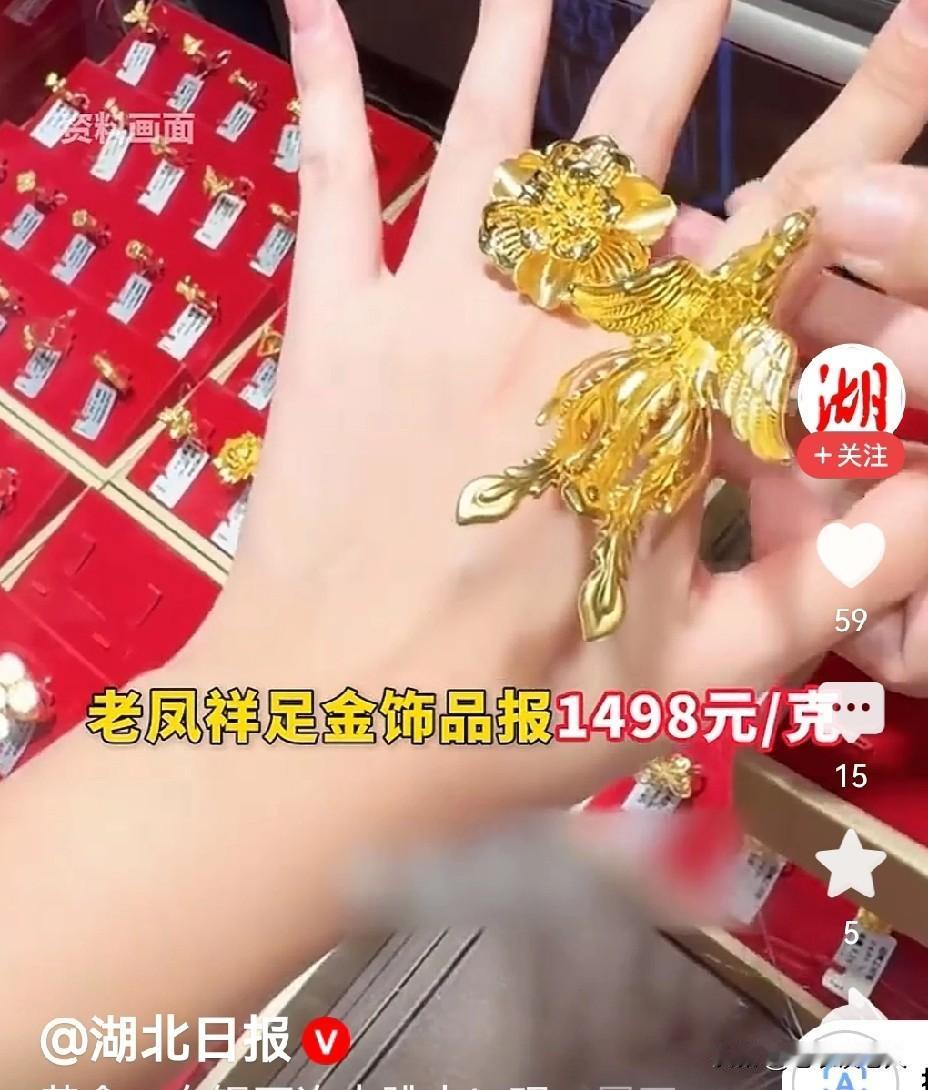 黄金克价涨至1600元,一夜大涨102元! 今天小区的赵阿姨,早晨刷新闻,看到了一则消息,现货黄金重新站上5000美元大关,一度上涨已经超过2%。 她通过查询又发现,周生生足金饰品今天的报价是1600元/克,与前一日相比之下,从1498元/克上涨了102元。 于是她心动了,在前几个月之前,他和老伴把日常生活中的养老金节省下来的积攒起来的10万零花钱,全部拿去买了80克黄金。她说当时的金价是1180元/克,于是和老伴商量一下,便拿起金条就到街上去卖掉。 她告诉我们说,80克黄金,按照今日周生生挂牌金价1600元/克,就卖了128000元钱。 她高兴地说,她和老伴买的这80克黄金的时候,只花了94400元钱,现在这样一来,80克黄金卖掉后,一下子就赚到了33600元,比在银行里存款吃利息,不知道要强多少倍。 她说,这样的投机性质的理财方式,只要掌握了赚钱的当口,准确无误的出手,资金非常安全,没有风险,赚钱是非常容易的事情,比在银行里存款,效果还是要明显得多。 我的年度菱感记忆金饰克价涨至1600元 一夜大涨102元
