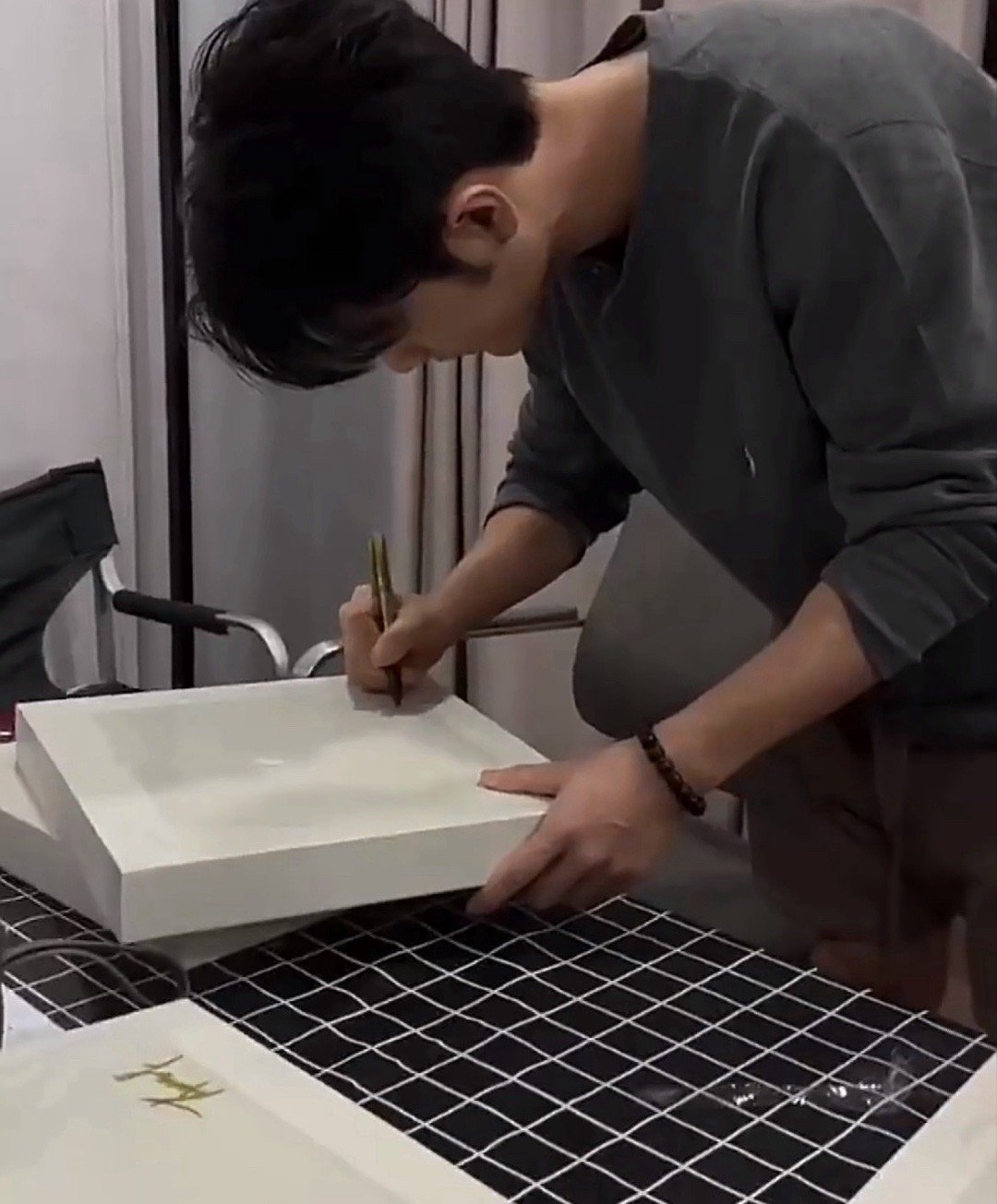 肖战签名专辑肖战签名的时候好认真啊,人帅字也好看,穿着牛仔外套真是太有气质了~