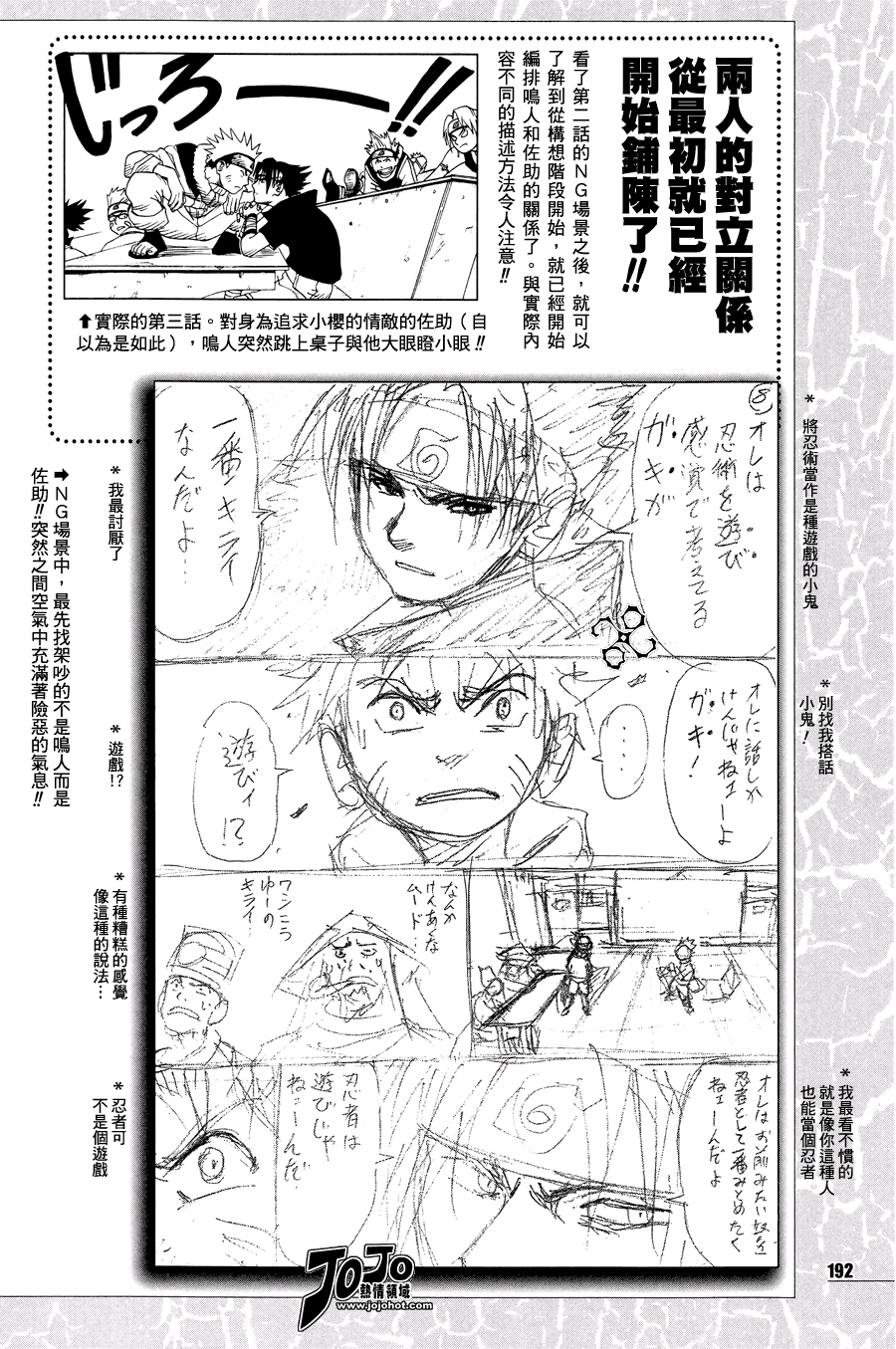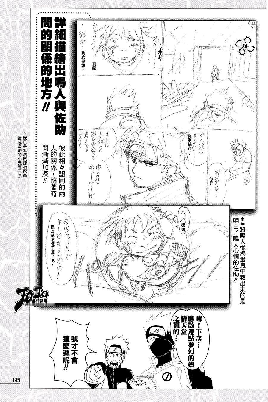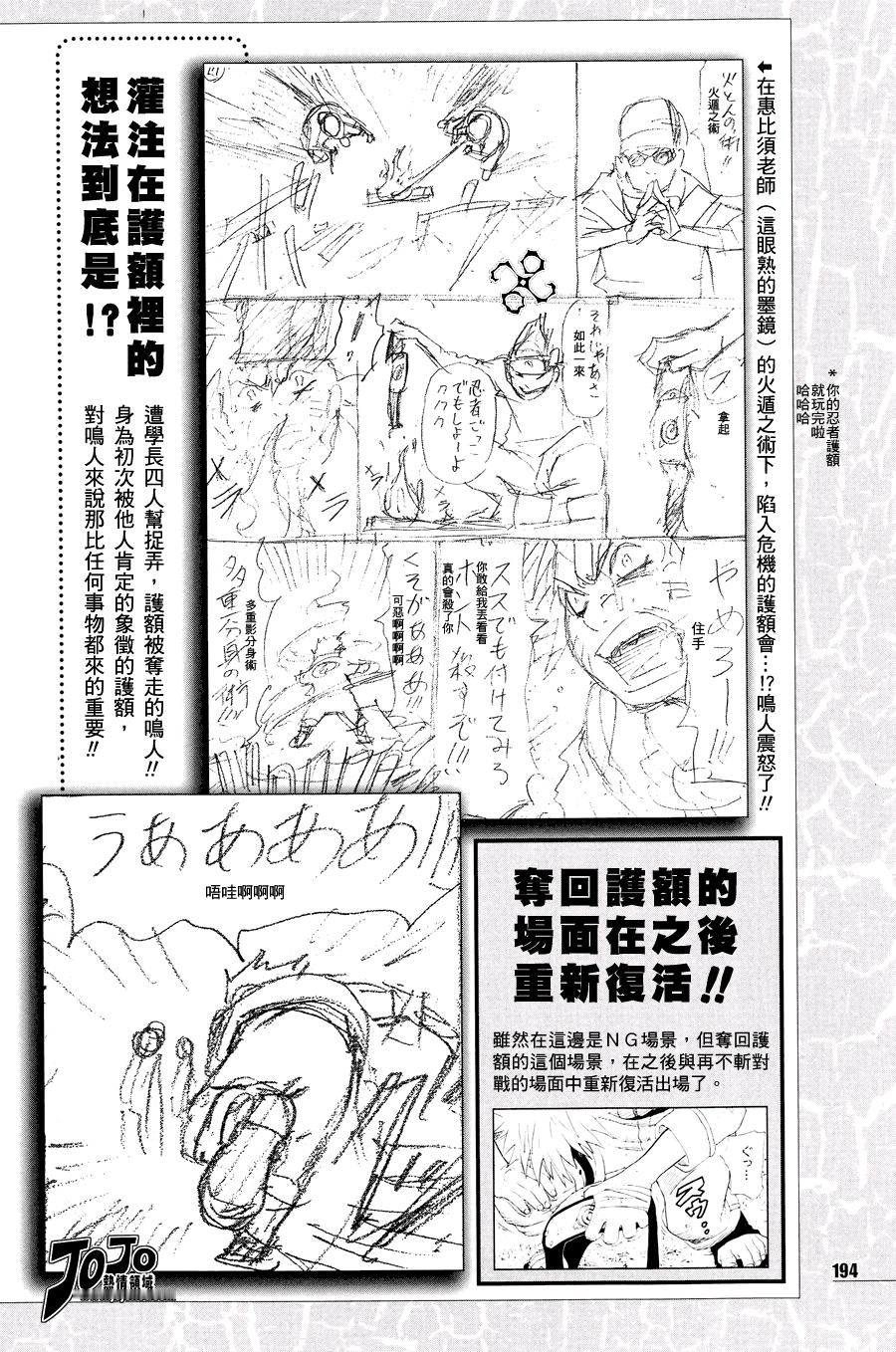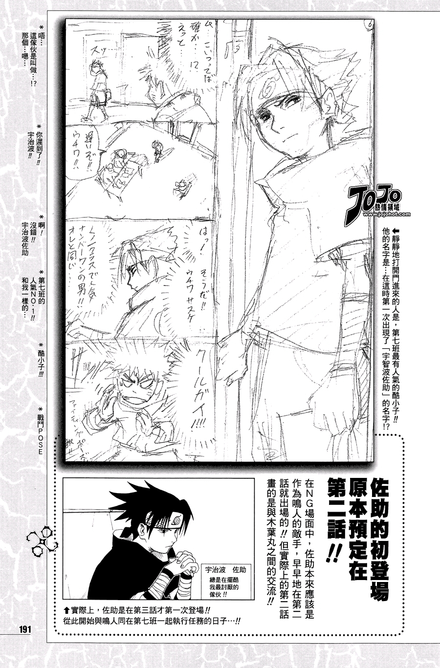 收录在公式书『火影忍者 皆之书』原本的设定是佐助在第二画初登场然后佐助在一群坏孩