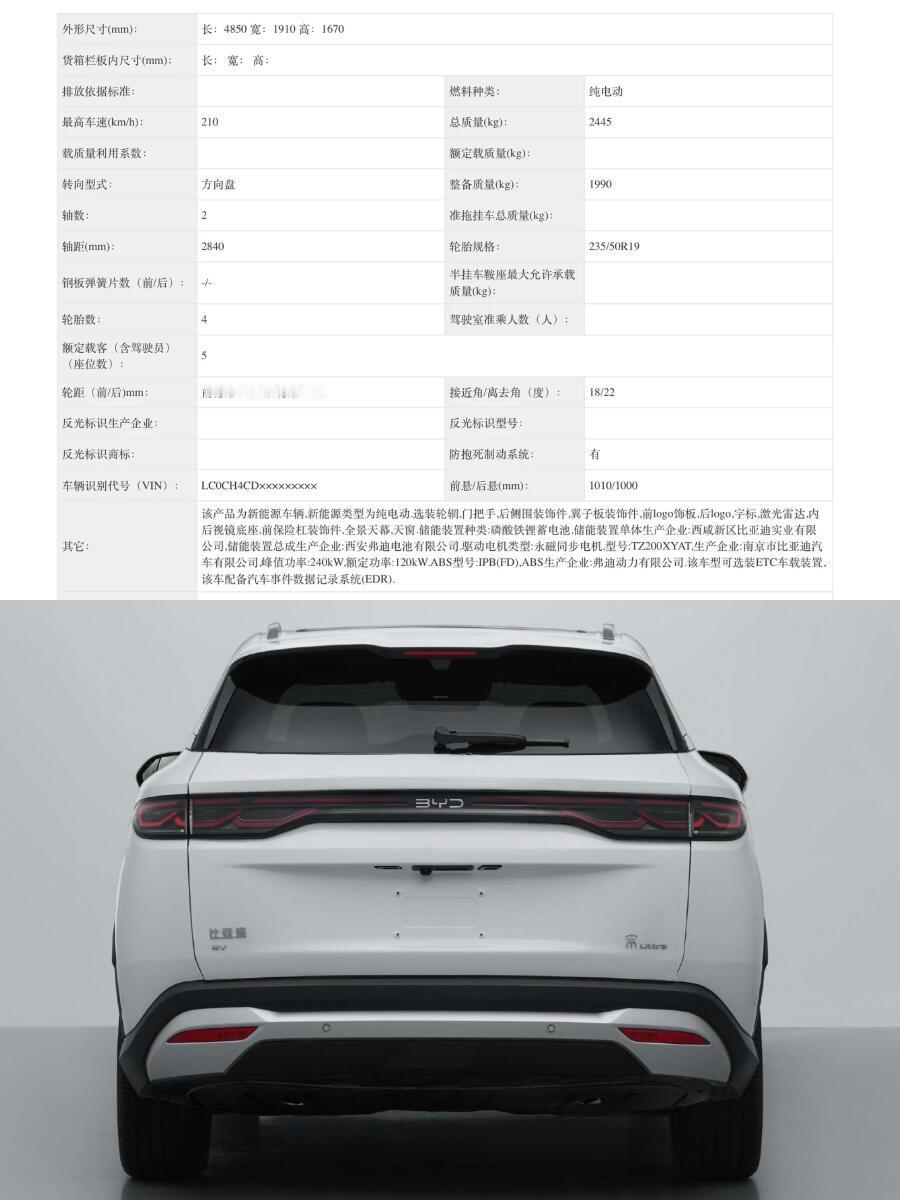 新车定位中型纯电SUV,尺寸数据为4850/1910/1670mm,轴距2840mm,可以看作海狮06 EV的姊妹产品。从工信部申报信息来看,新车采用240kW单电机,提供激光雷达天神之眼-B智驾方案,配置"青春版"兆瓦闪充配置。【来自懂车帝车友圈】