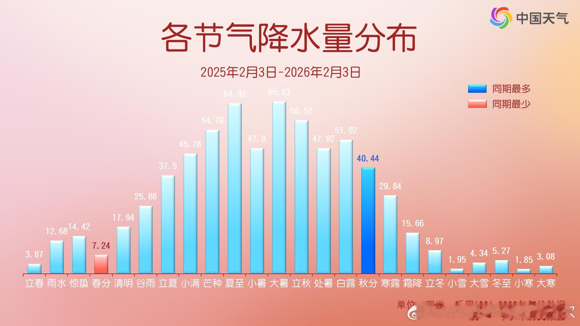 【24节气回顾】2025年立春开启的一轮24节气,我国最冷的节气是大寒(大寒和小寒其实都偏暖,但大寒偏暖程度弱一些,因此冷得超小寒)。降水最少的节气为小寒,降水最多的节气为大暑。同时大暑也是这一轮节气中,气温最高的,拿下双料冠军。