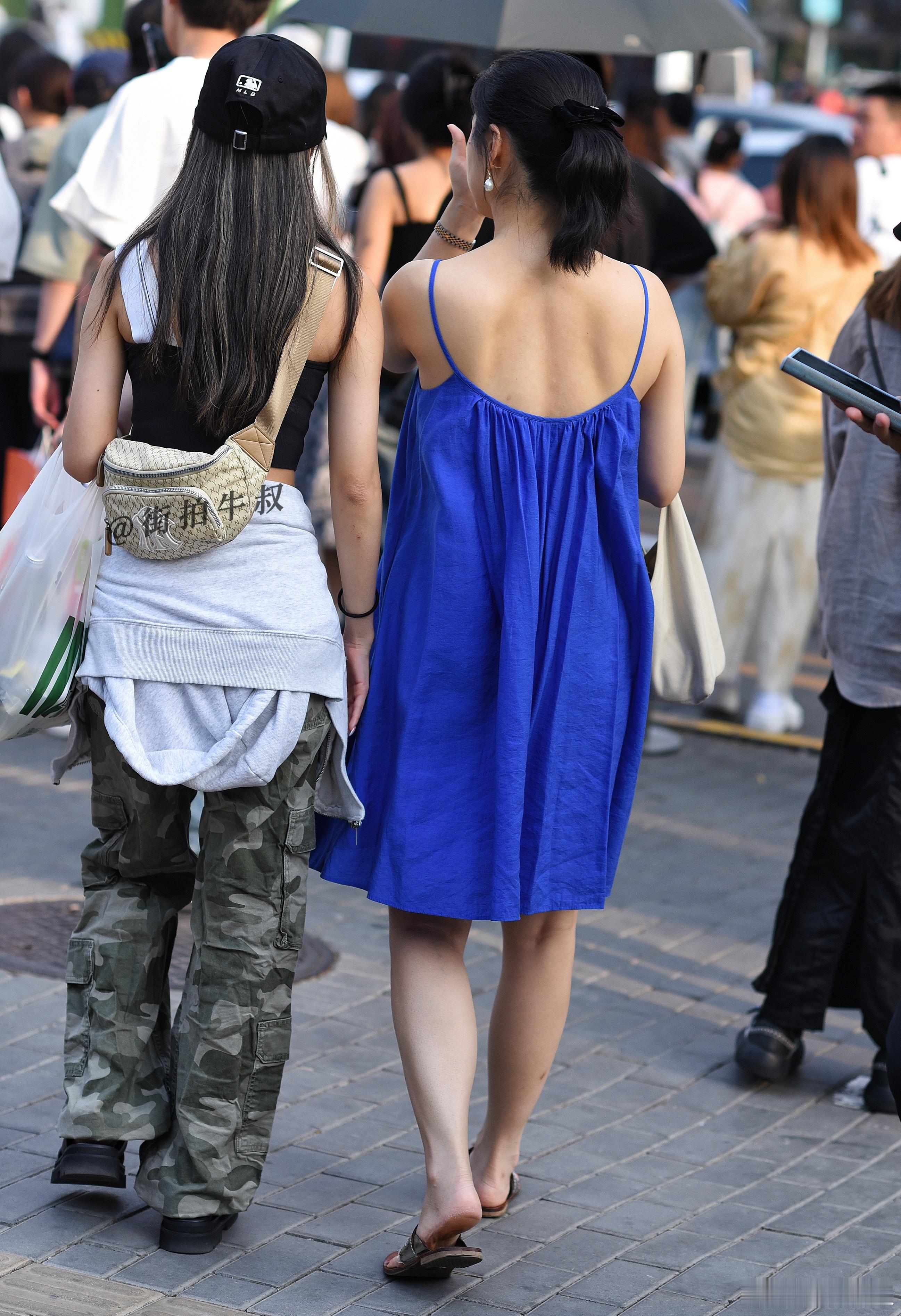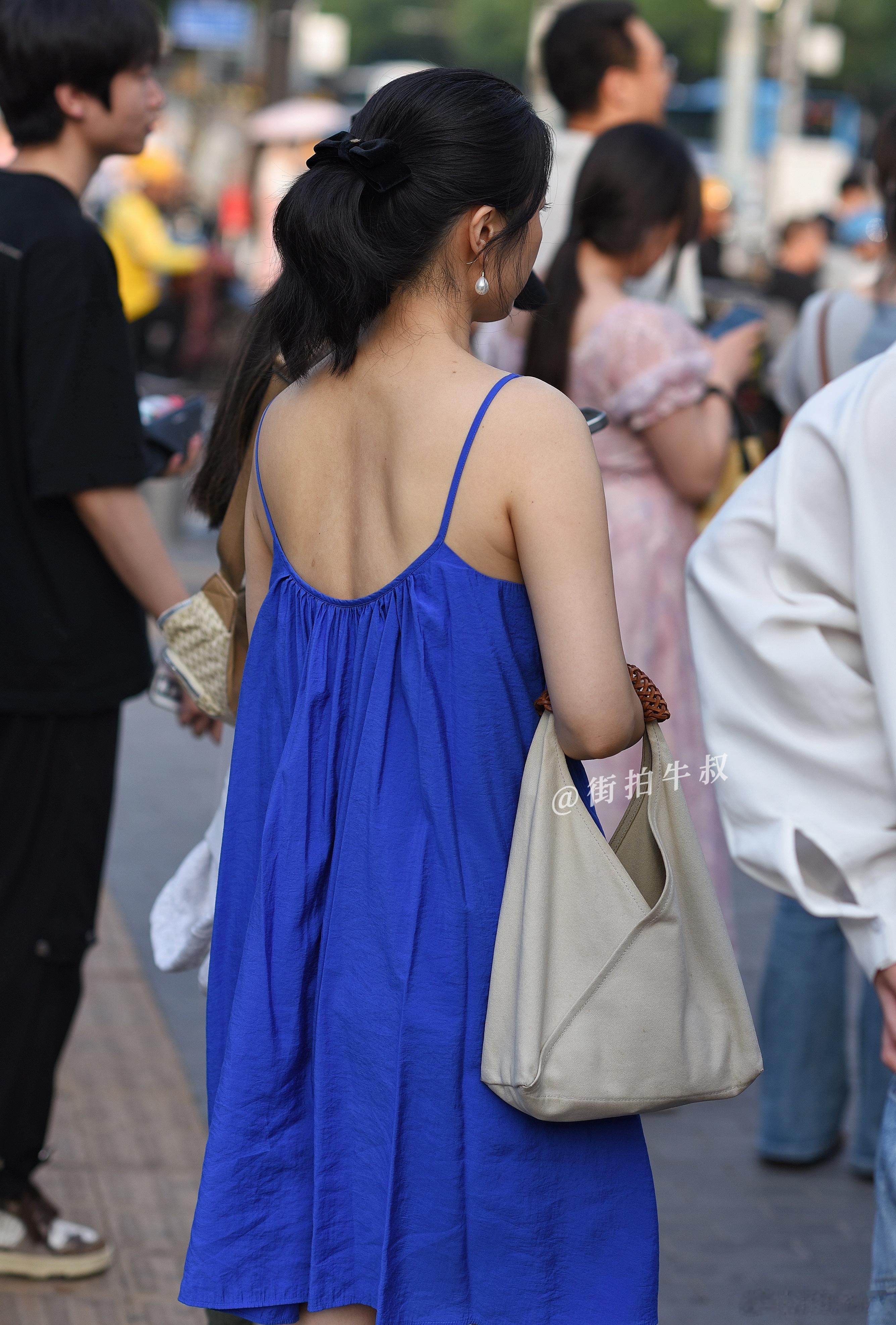 黄油碎花裙,把气质穿在身上。黄油底撞色黑蓝碎花,自带复古滤镜,吊带裙型勾勒出