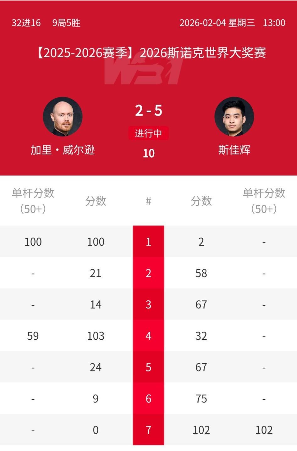 2026斯诺克世界大奖赛首轮再赛四场,中国又一位球员斯佳辉大胜晋级。萝卜爆冷不敌杰克琼斯。奥沙利文5-3逆转晋级。韦克林零封塔猜亚。 奥沙利文5-3奥康纳 斯佳辉5-2加里威尔逊 杰克琼斯5-1尼尔罗伯逊 韦克林5-0塔猜亚