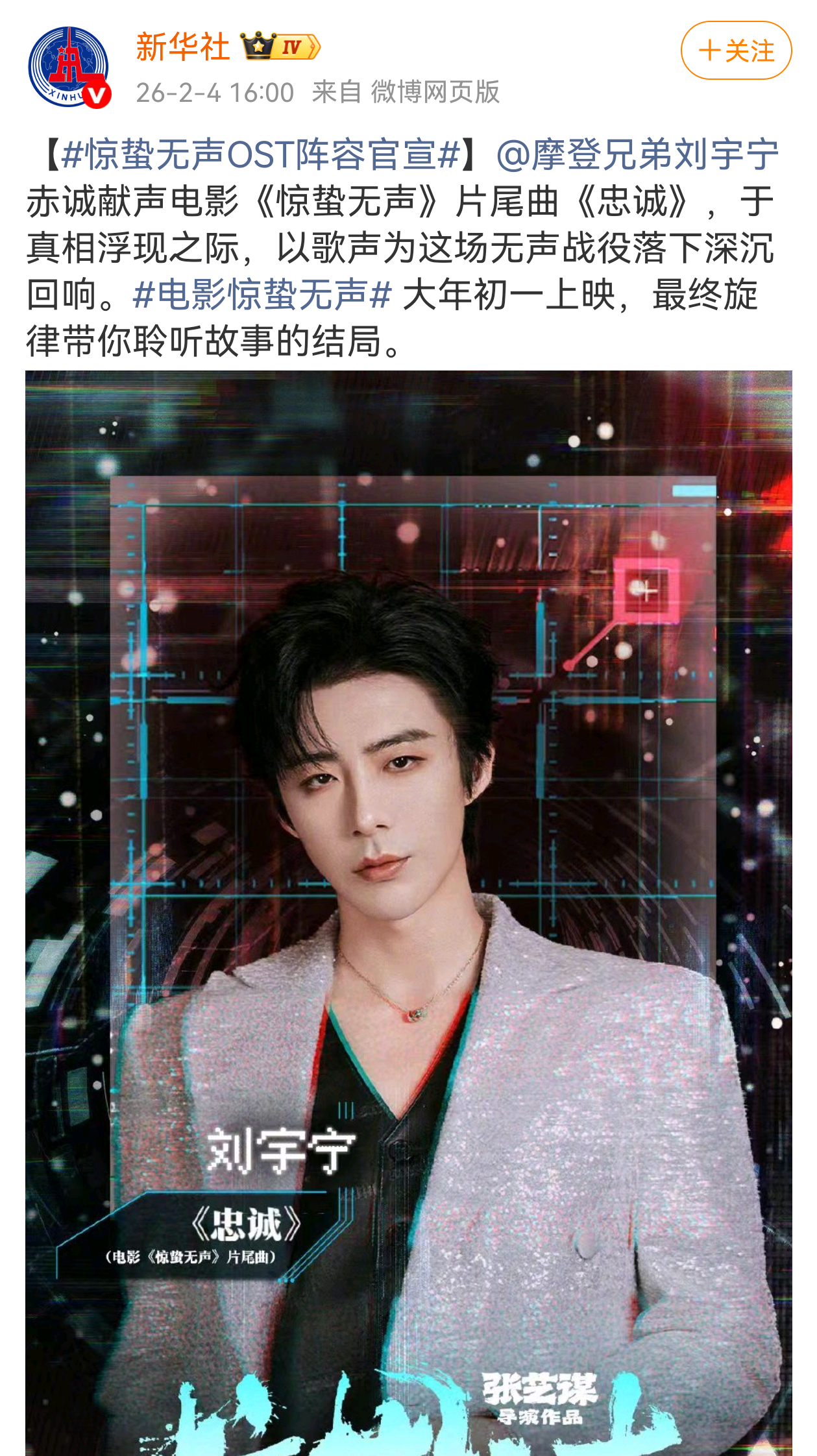 刘宇宁献唱电影《惊蛰无声》片尾曲《忠诚》!