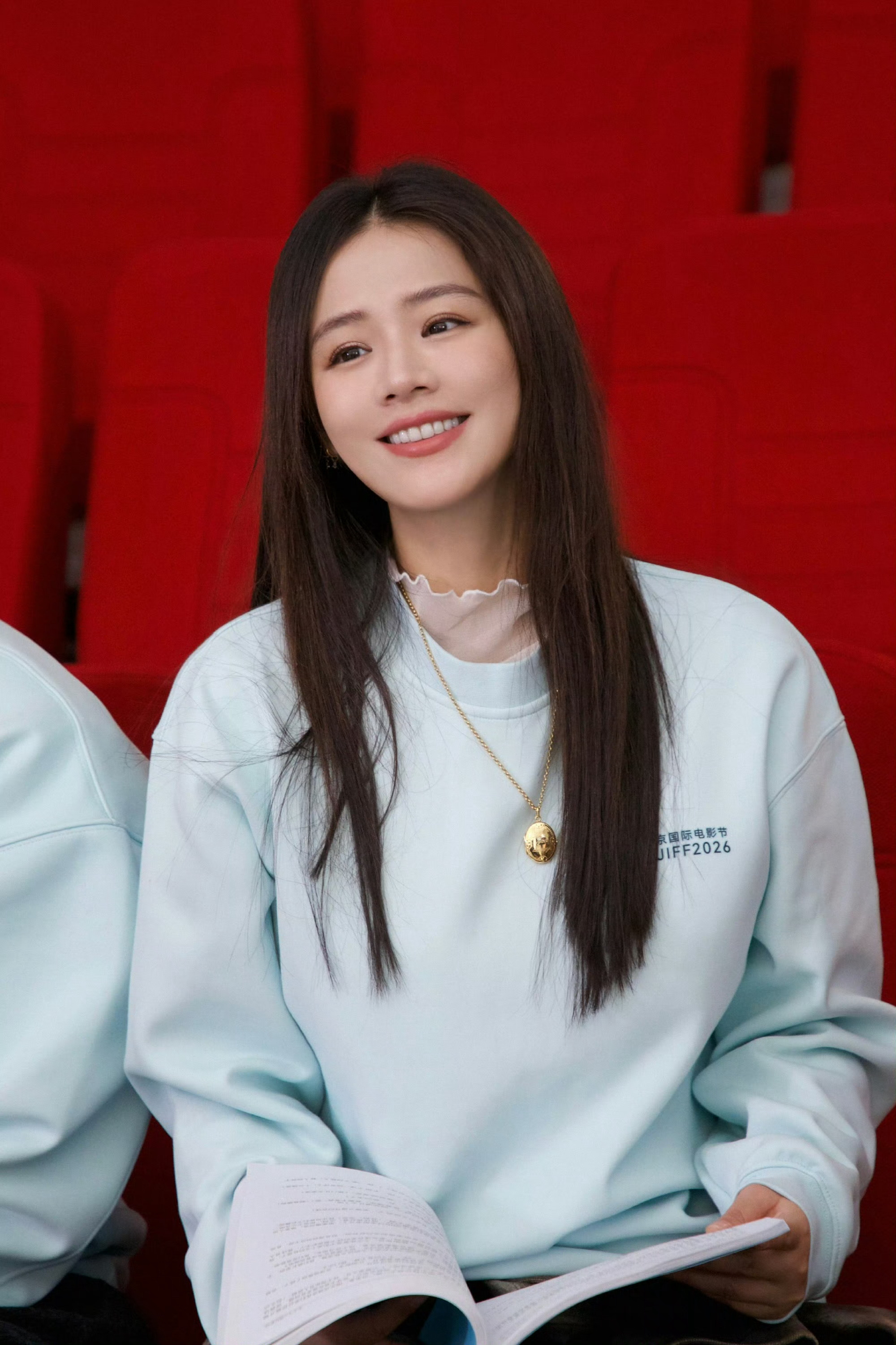 看走眼了,差点以为马思纯的裙子上面被划了两道口子。