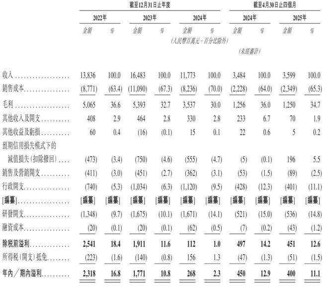 招股书显示,先导智能2022年、2023年、2024年营收分别为138.36亿元、164.83亿元、117.73亿元;毛利分别为50.65亿元、53.93亿元、35.37亿元;期内利润分别为23.18亿元、17.71亿元、2.68亿元;期内利润率分别为16.8%、10.8%、2.3%。