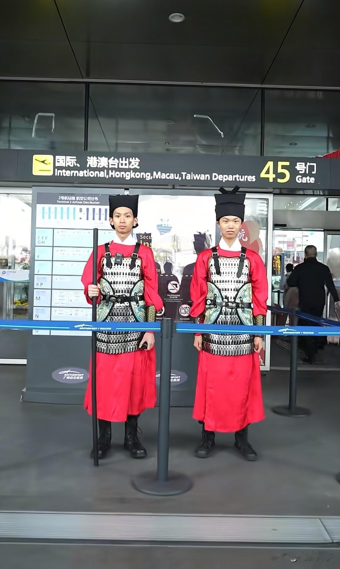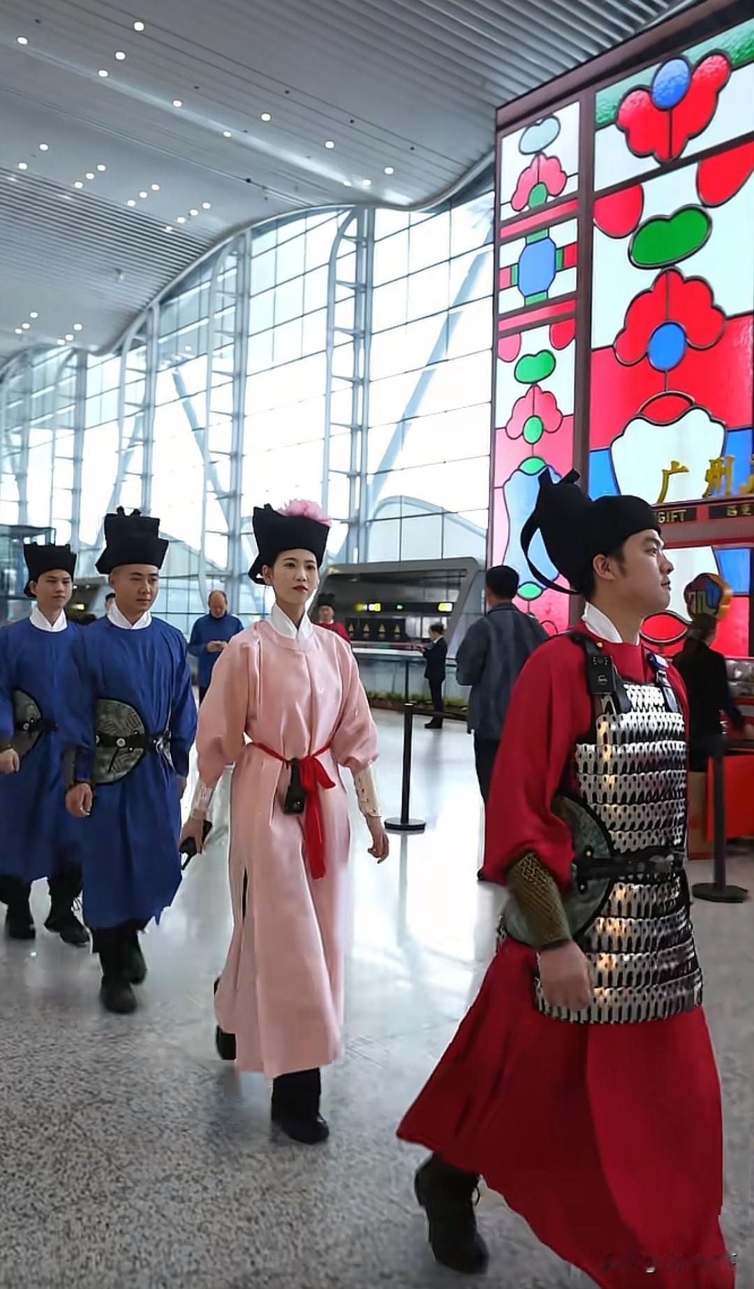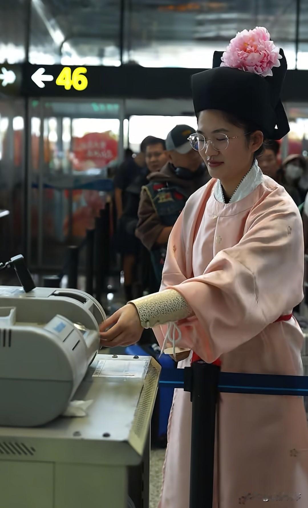 广东这波上大分,2月2日,广州白云机场的工作人员统一换上了宋制汉服执勤,宋服寓意“送服”,女安保人员发间点缀粉色牡丹簪花,寓意富贵吉祥,工作人员还专门学习了宋代“叉手礼”,情绪价值直接拉满,知道的是在搞活动,不知道的还以为是穿越了。 据悉这已经不是白云机场第一次搞这样的活动了,去年他们穿的是唐装,从一开始的不好意思,到现在的落落大方,这波文化输出太强了,广东不愧是敢为天下先的第一大省,怪不得人家GDP全国第一呢[呲牙][呲牙]