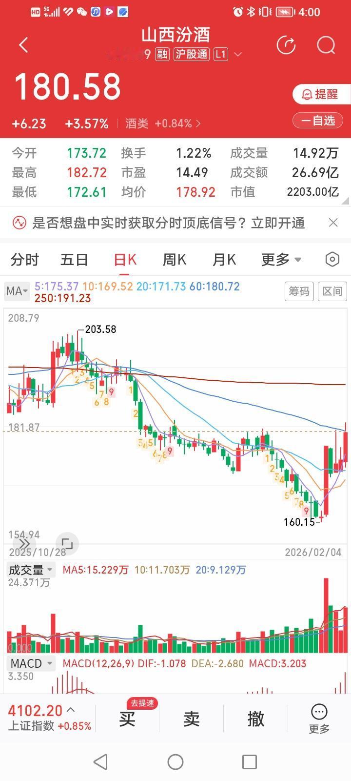 什么情况?今天高端白酒股价涨幅排序竟然是汾茅泸五洋。完全打乱了大家耳熟能详的茅五泸汾洋的传统排序。 山西汾酒收盘上涨3.57%,排第一; 贵州茅台收盘上涨3.40%,排第二; 泸州老窖收盘上涨3.27%,排第三; 五粮液收盘上涨1.16%,排第四; 洋河股份收盘上涨0.72%,排第五。 看来高端白酒茅五汾泸洋走势分化很严重啊!目前股价站上年线的仅有贵州茅台和泸州老窖。山西汾酒今天股价一度冲上了60日均线,五粮液正在蓄势冲击60日均线,而洋河股份走势最弱,还在艰难筑底之中。