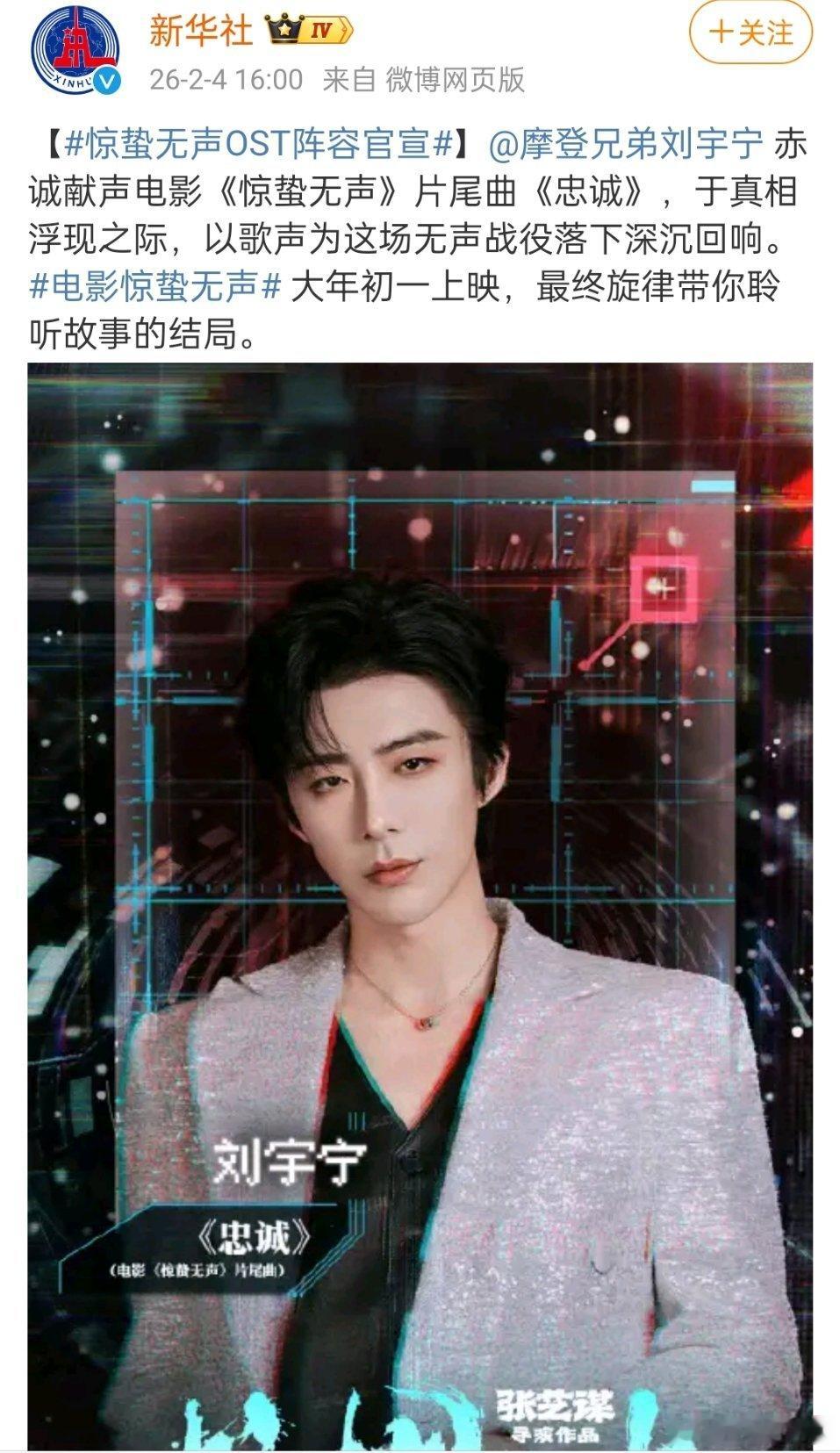 刘宇宁 献唱《惊蛰无声》片尾曲《忠诚》!宁哥在ost赛道也同样炙手可热