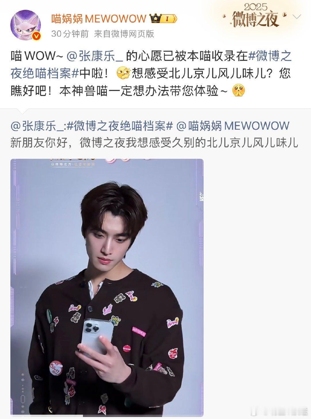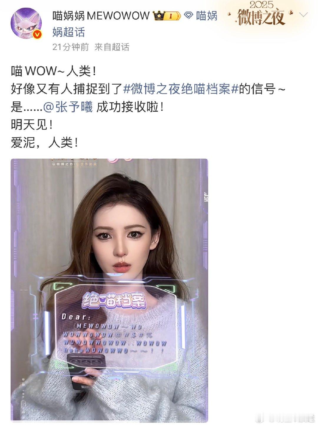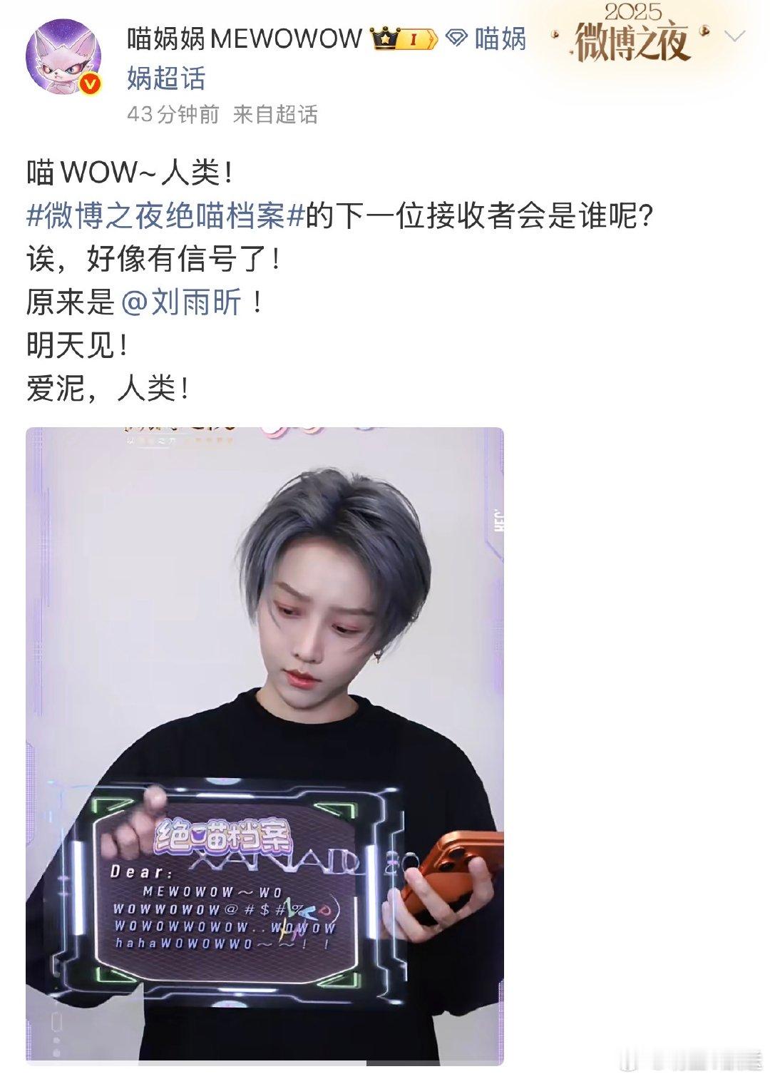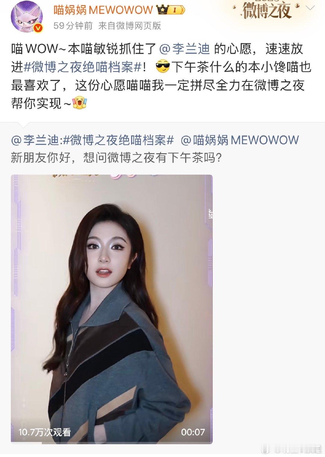 微博之夜绝喵档案 绝喵档案终极剧透!喵娲娲集齐李兰迪、刘雨昕、王嘉尔、张康乐、张予曦、周柯宇心愿,微博之夜花式圆梦,坐等开播✨