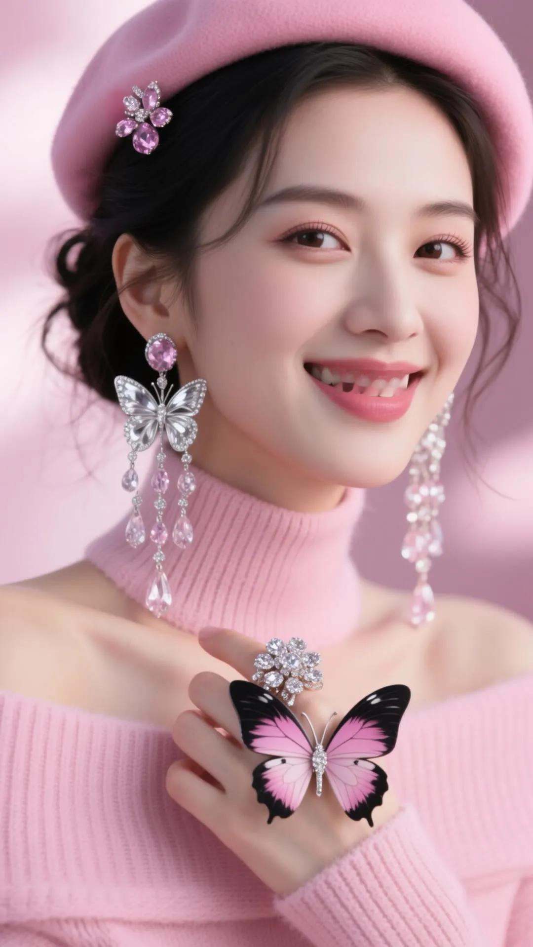 粉嫩少女心,甜美蝴蝶耳饰,闪耀粉色珠宝,时尚穿搭指南