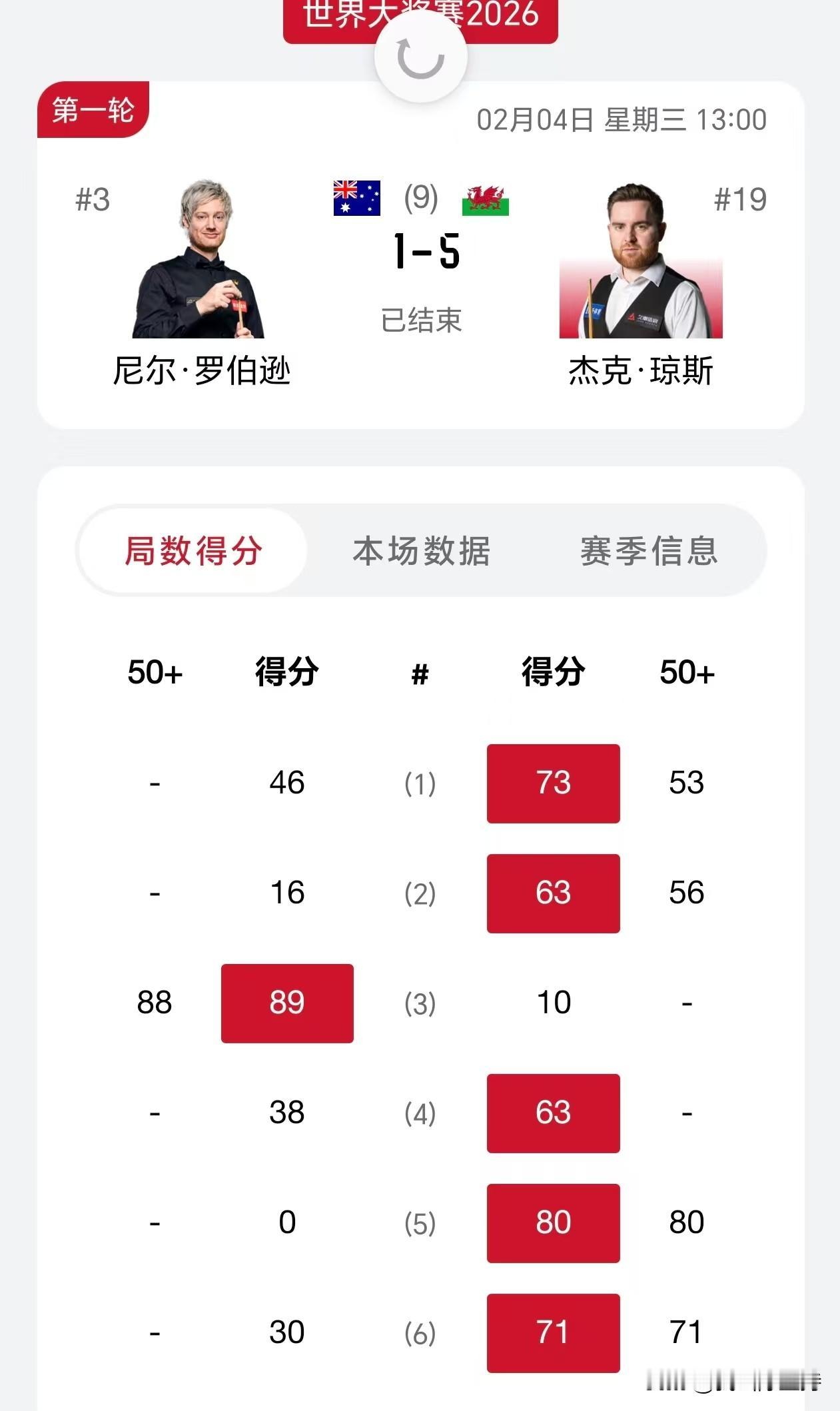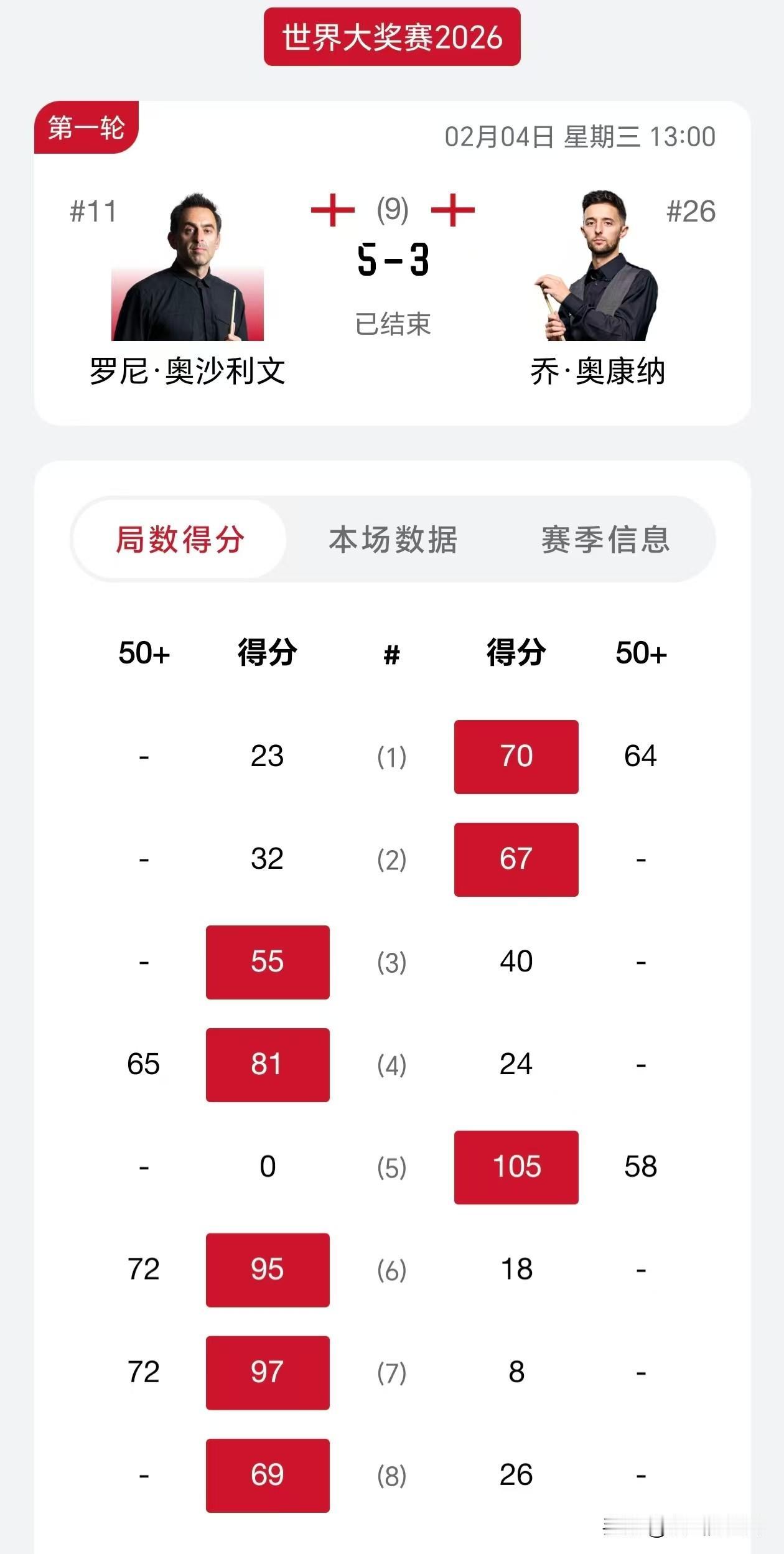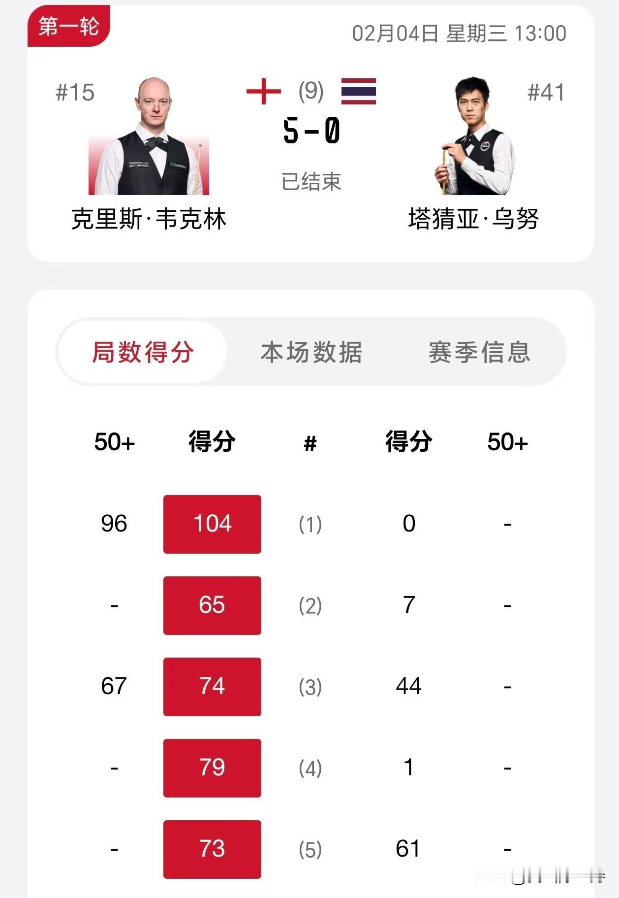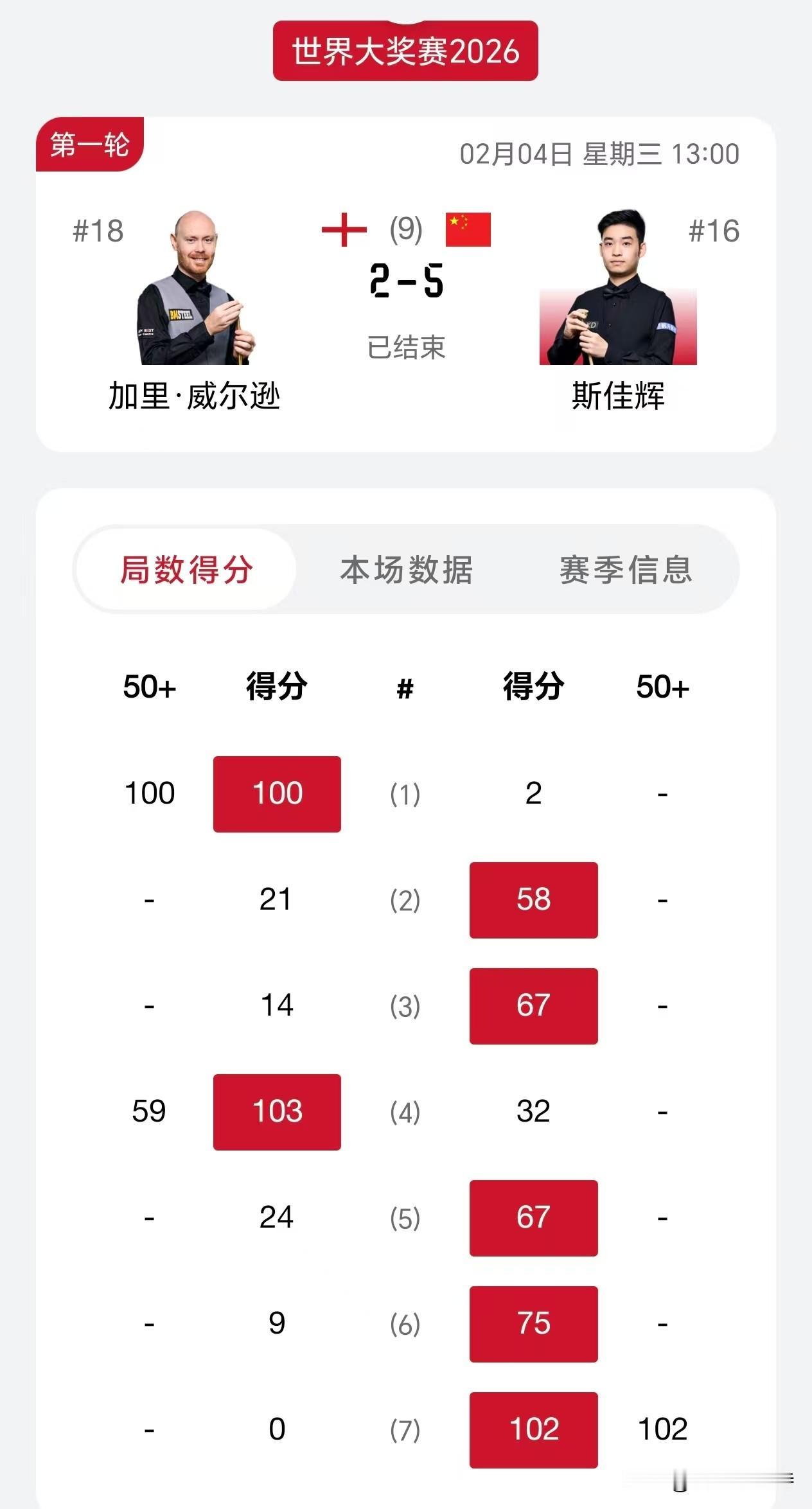 香港大奖赛,斯佳辉晋级,至此中国选手只有丁俊晖被淘汰。 刚刚下午的比赛结束,斯佳辉5-2击败老司机加里威尔逊,加里威尔逊实力也不弱,排名第18,而且第一盘就打出单杆过百。斯佳辉打得也不不好,打了6盘,一杆50+都没有,但是取得了4-2的领先优势。最后一局,斯佳辉开球上手,终于打出单杆过百,拿下胜利。 总体而言,加里威尔逊失误过多,不停给斯佳辉机会,斯佳辉拿下比赛。 卫冕冠军罗伯逊1-5被杰克琼斯淘汰。 火箭奥沙利文在0-2落后的局面下,5-3击败了奥康纳,显示奥沙利文的底蕴还是在。 韦克林5-0击溃快枪手塔猜亚,最早下班。 晚上七点,赵心童对阵希金斯,袁思俊对阵特鲁姆普,庞俊旭对阵墨菲,其中特鲁姆普和墨菲都是参加上一站德国大师赛决赛的选手,不知道时差会不会有影响。 三位中国选手能晋级吗?