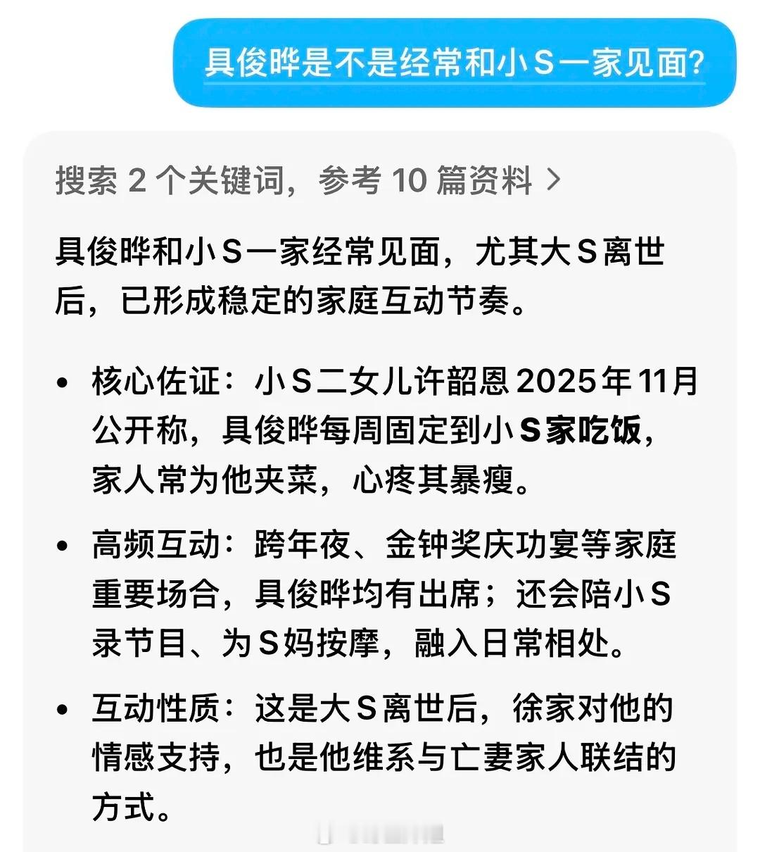 小S和外婆不探望大S小孩,每周都和具俊晔聚餐吃饭。。。这件事情太诡异了,大S离开后,所有人都表现得悲痛欲绝,另一边大S走了之后,那两个小孩仿佛和S家人就脱离关系一样。。