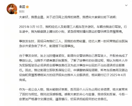 金晨这助理不错,忠心可嘉、日月可鉴。网传金晨交通肇事顶包、逃逸、骗保?澄清:不是顶包,是助理自行背锅;并未逃逸,是被送医疗伤;没有骗保,事后金晨主动申请撤销保险理赔,并承担车损和设施损坏费用。原来都是助理惹的祸!助理真是的,竟然谎称自己是驾驶员,好心办坏事,让简单事情复杂化了。巧合,巧合,无巧不成书嘛!