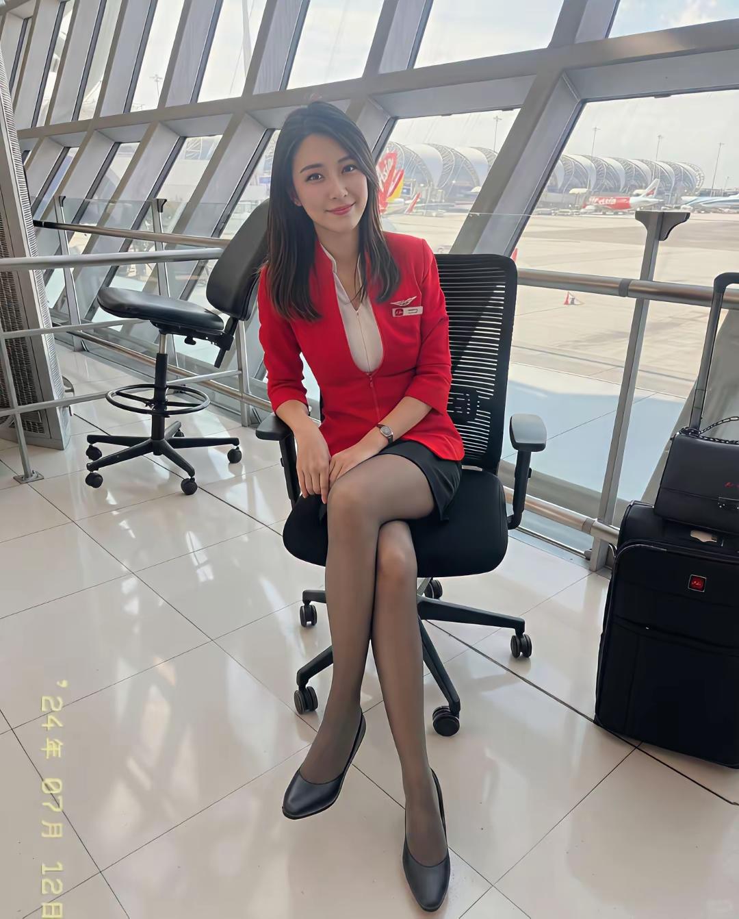 但她们空姐那一抹红装制服,真的是一道风景线,太大气又引人注目了。