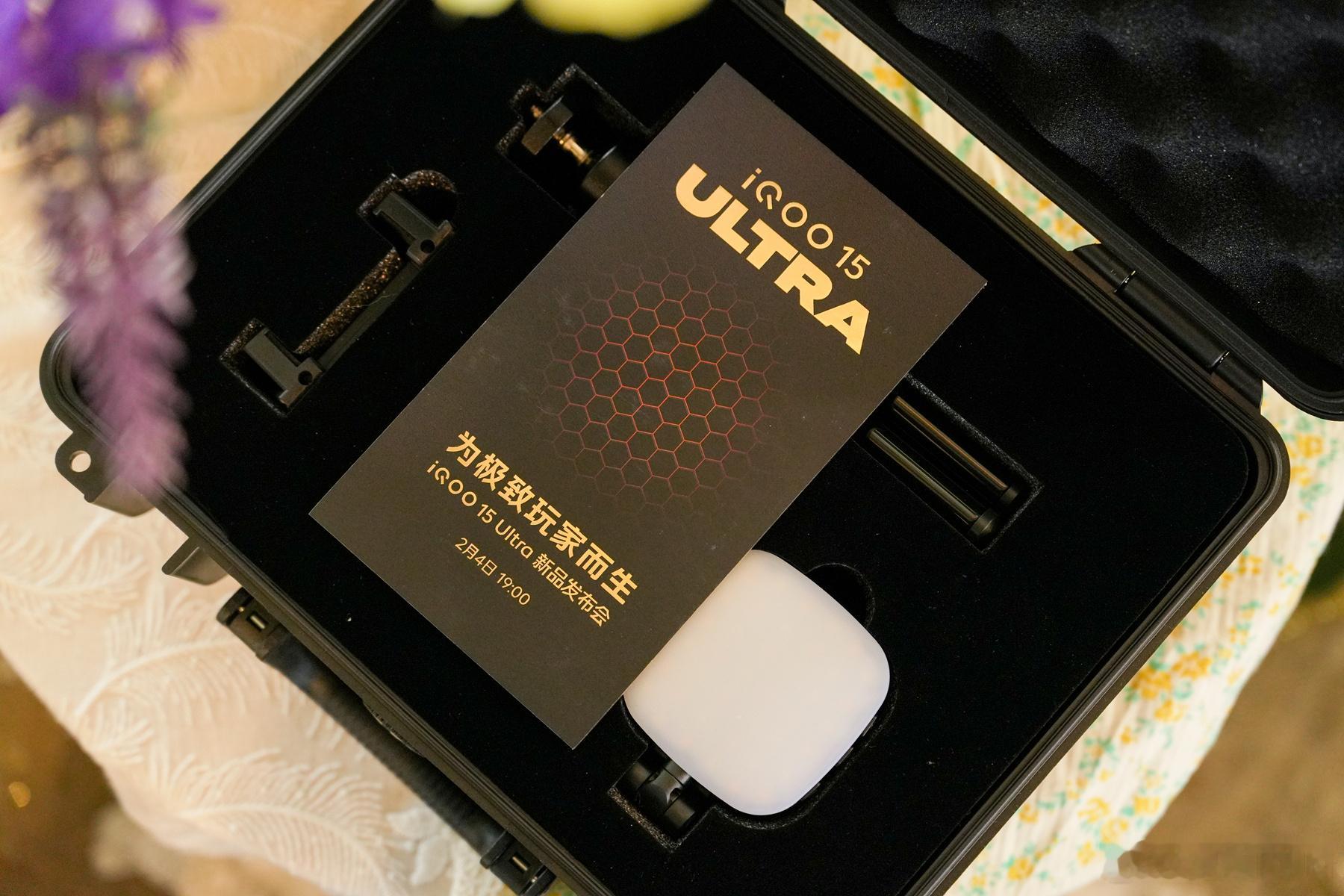 可能是离春节最近的一场手机发布会,今晚7点iQOO 15 Ultra如约而至。发布会邀请函有是个密码工具箱,有点特工范儿了。里面有金属三角支架、手机磁吸补光灯、手机夹、还有双麦克风,看来不仅是这款手机性能旗舰,还是影像旗舰呀!