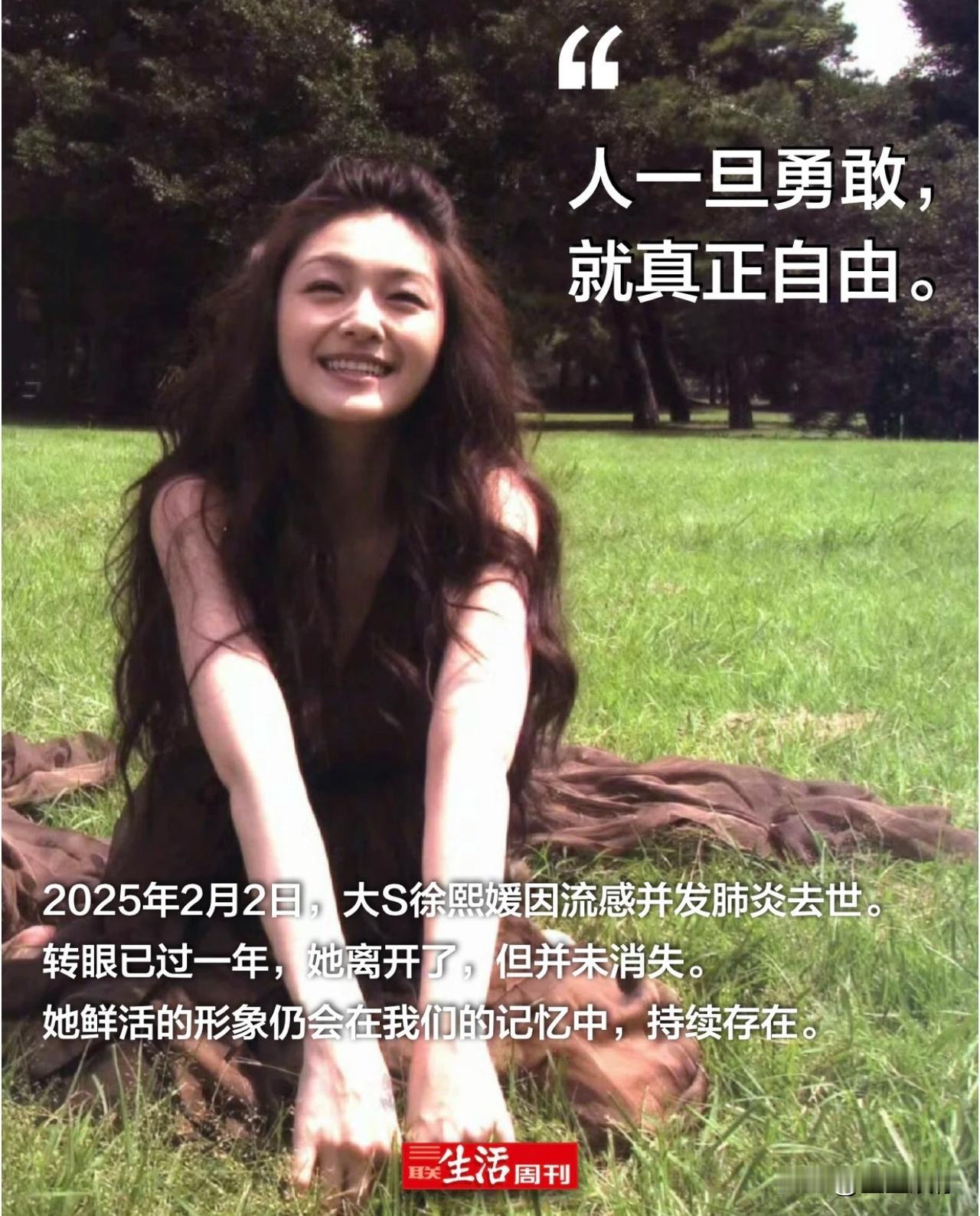 以前还在想,大s老了之后会是怎样有活力又美丽的老太太,可能还在捏着香槟告诉年轻女孩子要怎么爱惜自己怎么恋爱,可惜她定格在了依然年轻美丽的年纪。 鲜活真的是她的标签,不管喜欢不喜欢她,都能感觉到她的鲜活,强烈的存在感,让她的离开感觉很不真实。她勇敢她所选的一切,她不在我们选择尊重就好。