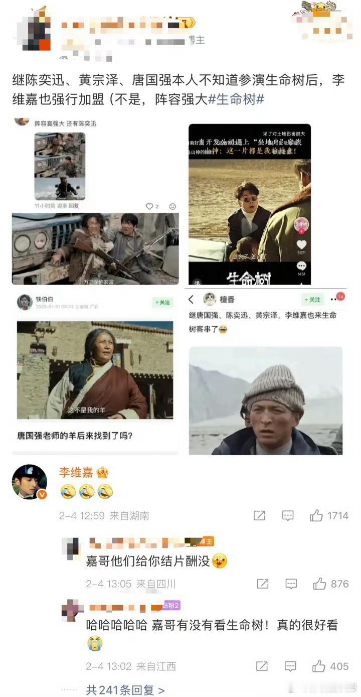 李维嘉回应出演生命树电视剧生命树 群演撞脸李维嘉火上热搜,本尊火速回应《生命树》相关,冲浪小能手嘉哥实锤,笑点拉满~