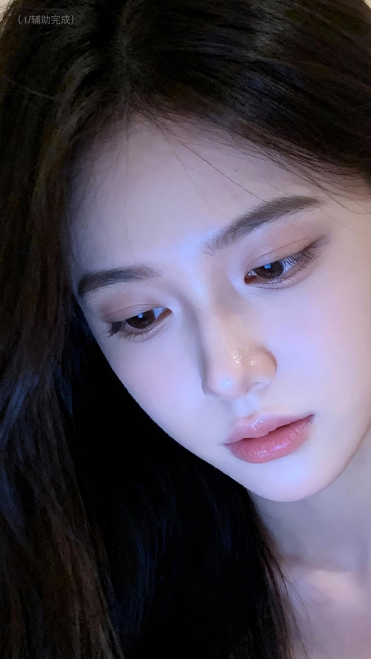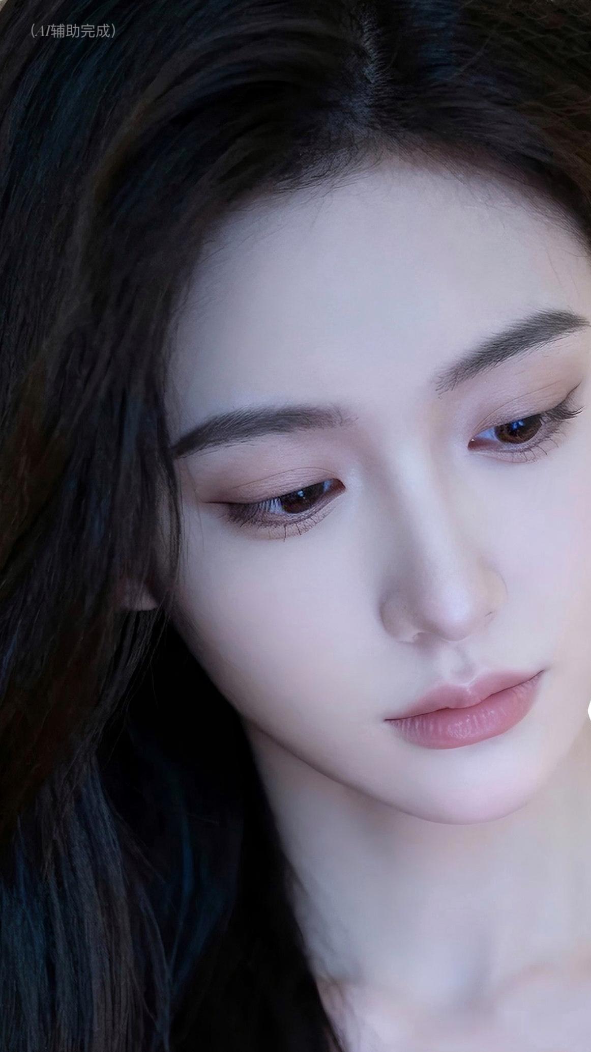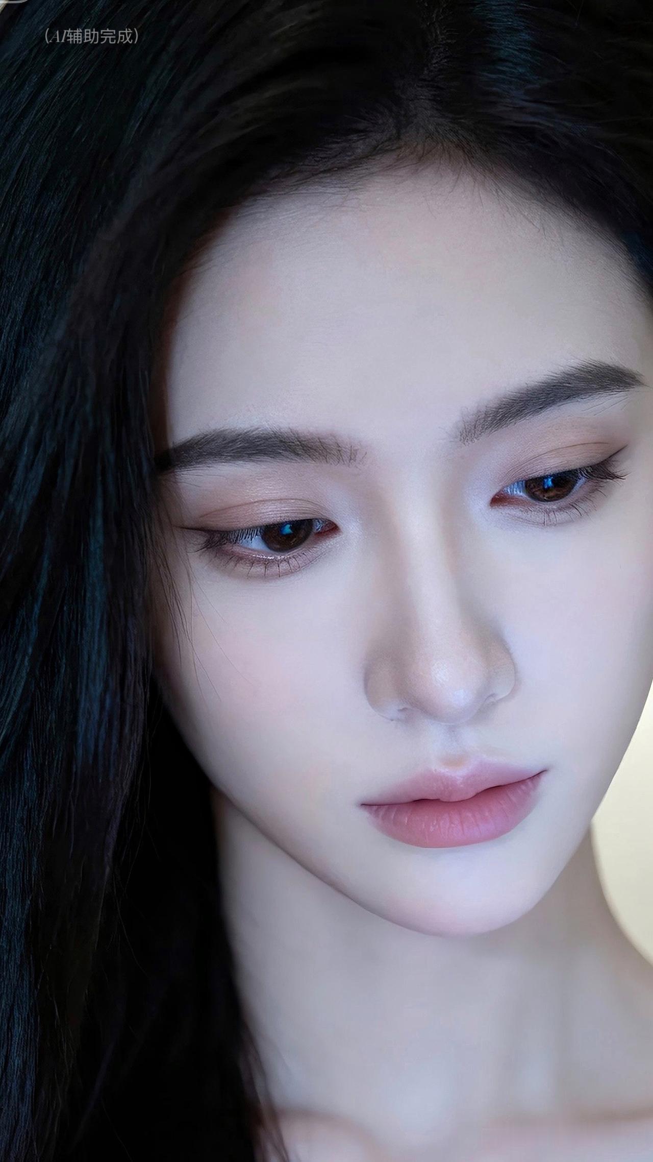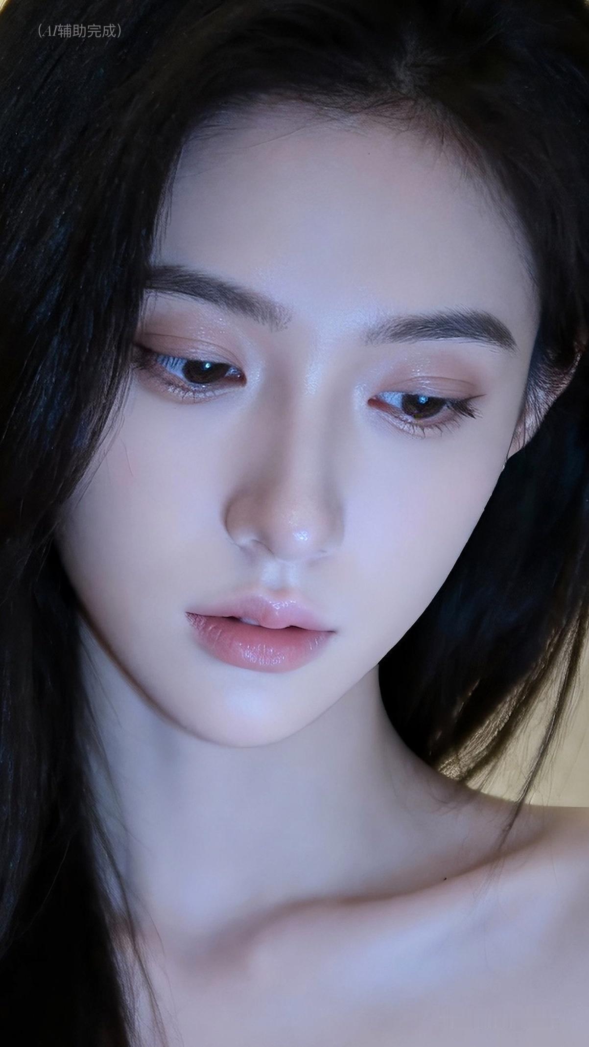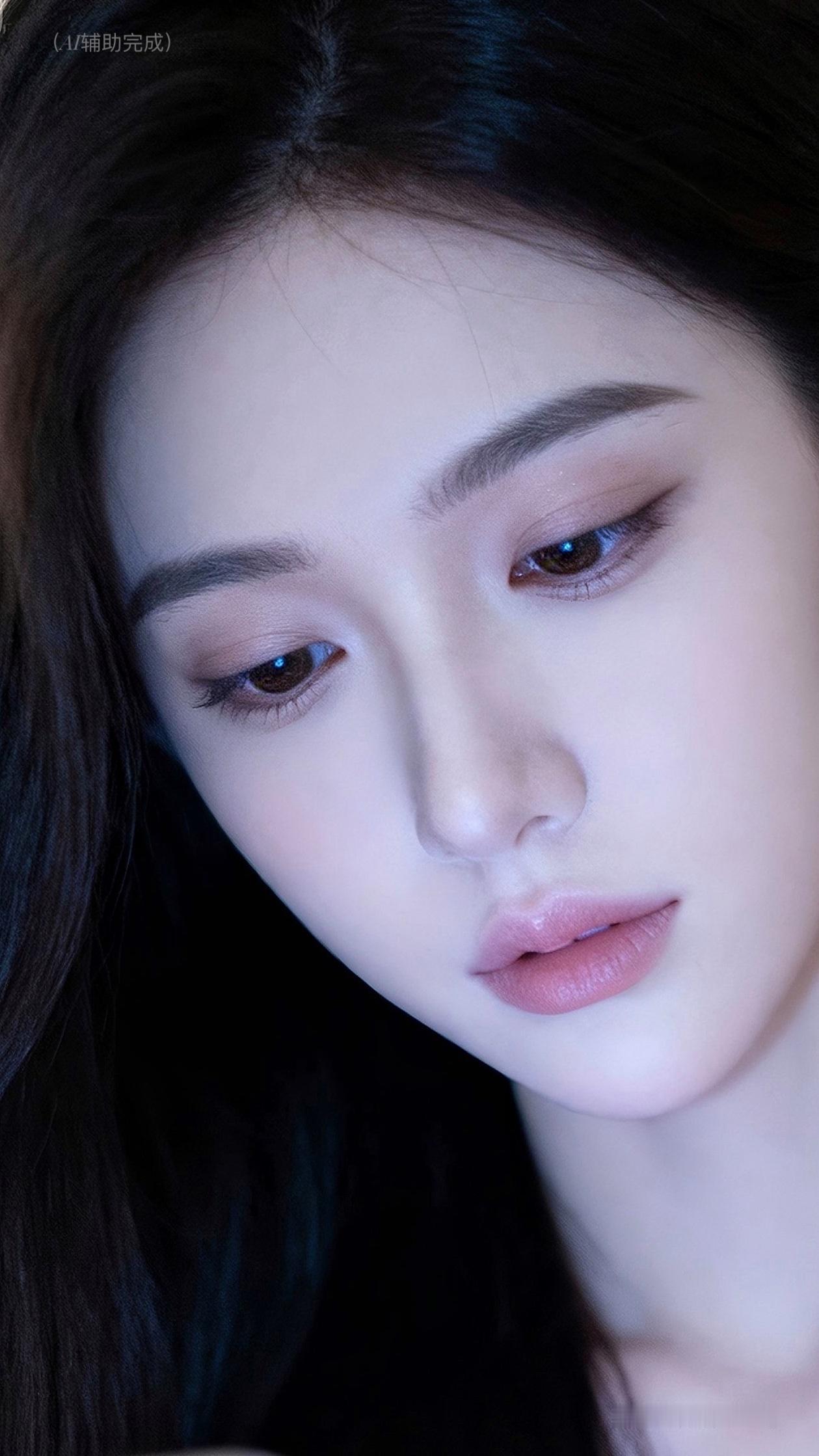 乌发如绸垂落泛柔光,白皙透润似玉。琥珀棕眸低垂藏温柔,睫卷纤长若蝶翼,挺鼻樱唇粉嫩娇。虚化光斑衬静谧,温婉恬静东方韵漫帧间。这帧美人如工笔画,一眼沦陷!