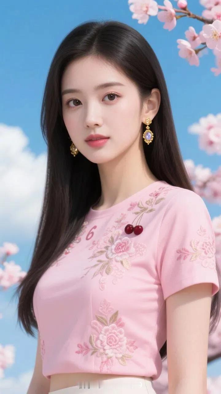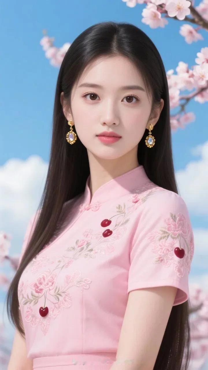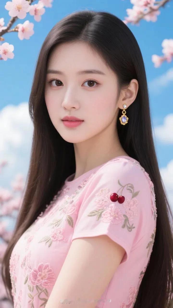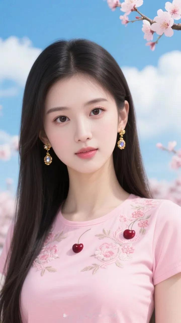 春日少女,粉衣飘逸,樱花树下,美不胜收。