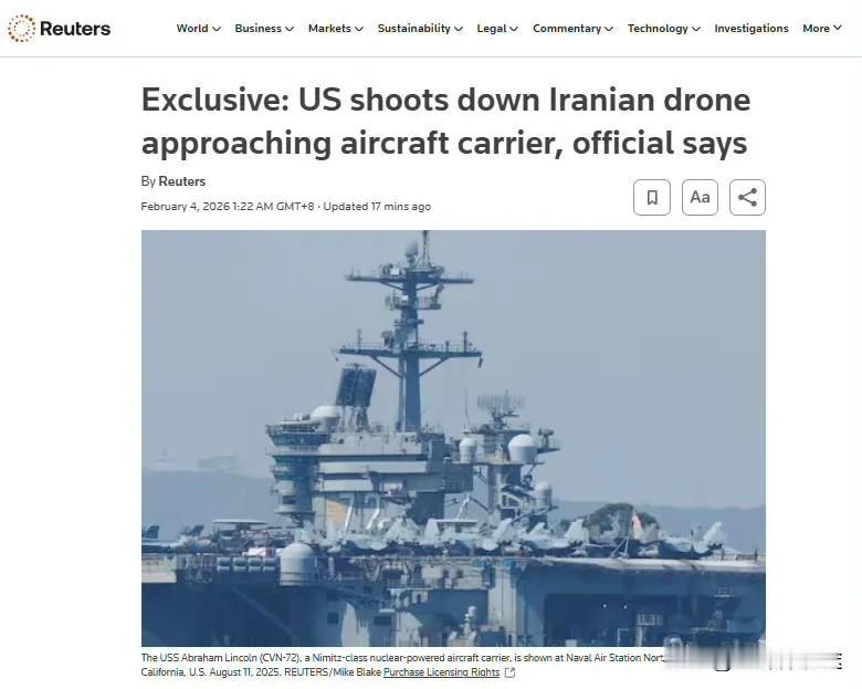 伊朗改变战术:先下手 派出无人机 及快艇 挑衅美军!敢于拼“刺刀”向也门学习,美国或许知难而退! 2 月 3 日 美军中央司令部发言人表示:美军林肯号航母起飞 F-35C 战斗机击落了伊朗的无人机沙赫德-139。 就在前段时间美国林肯号航母进入到指定的阿曼海域指定位置 之后,美国一直在准备向伊朗开战,但林肯号航母此时距离伊朗境内将达 1000 公里距离 不再敢往前行驶。而在伊朗军方表达出如果美军敢对伊朗发动打击,伊朗将对美军在中东基地全部列入打击范围之后,美国林肯号开始溜出阿曼海域。 伊朗为了查询美国林肯号航母的去向,派出了无人机沙赫德-139 前往阿曼海域盯梢,美军称无人机“主动逼近、意图不明”,且无视美方“降级措施”,遂以自卫击落。伊朗军方表示,虽然被击落了无人机,但回传的图片与数据已是完整的,同时伊朗再派出多架无人机 前往阿拉伯海盯梢“林肯号”,一方面给林肯号压力 一方面表达伊朗对美军反制的举动,一边逗着美军玩 一边收集美国航母动向及轨迹,如果美军要再次出动战斗机的话,那有点是“成本太高了”吧! 另外在霍尔木兹海峡, 伊朗的快艇也正忙着围追一段挂美国国旗的油轮,伊朗军方曾表示,将在霍尔木兹海峡安装智能轮船识别技术的设备,确保哪些能过 哪些不能过,而其中更是要拦裁美国的油轮或商船、虽然此艘油轮在最后被美国海军救走了,但给了美国一个警示,霍尔木兹海峡伊朗说了算,如果美军舰敢接近,凭借着伊朗手里至少2000枚各种反舰弹道导弹,反舰巡航导弹,包括波斯湾,法塔赫,C-801、C-802、C-704、海鹰-2反舰导弹,打击,击沉美国油轮太简单了。当然也包括美国航母在内,也将在伊朗的中远程导弹打击之内 只要林肯号敢接近! 如今伊朗改变了 2025 年 12 天攻打以色列的战争,先下手为强,优先展现出伊朗敢打 敢拼的战斗意志,有了这股劲,及敢拼的战斗力,美军最怕就是遇上“不怕死”的国家,比如像也门这样的不怕死敢拼的国家,美军遇上也门“拖鞋军"也是 自软三分了,而伊朗此时先下手为强的战术,也有些借用也门的战术,痛击美军,对于美军长途拨涉抵达中东来说,伊朗有天时 地利 人和的有利条件,如果再结合也门 ,伊拉克 ,黎巴嫩等国,一起对付美军的话,相信美军不敢打,最终也就是胡谈一下,也许就离开了!