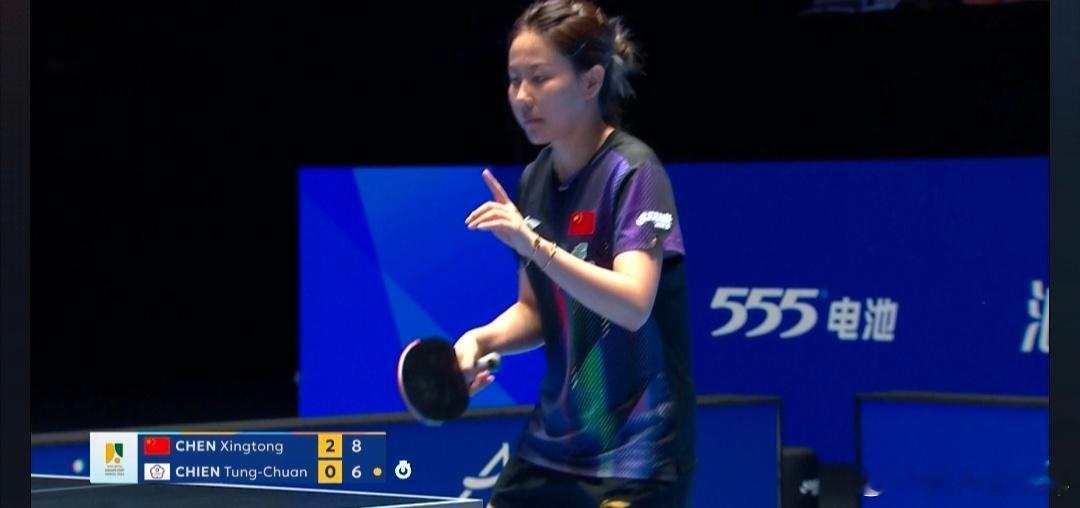 第35届亚洲杯女单循环赛首战,国乒名将陈幸同迎战中国台北选手简彤娟,三局分别以11-7,12-10,11-7拿下比赛,取的胜利✌🏻,恭喜同同取的开门红。后面比赛加油哦!