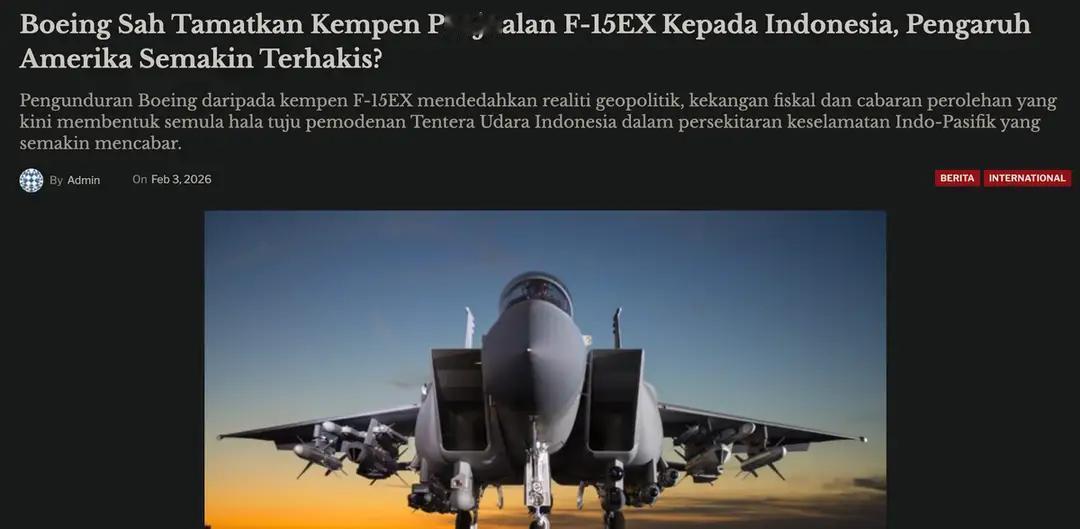 波音公司称因为歼10CE原因将停止与印尼的F15EX合同 据《防务亚洲》1月3日